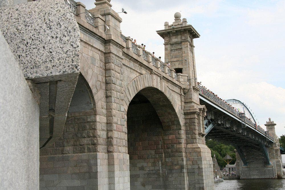 Мост был разобран, его главную арку массой в 1500 тонн погрузили на три баржи и переплавили на понтонах по воде на полтора километра вниз по течению в Парк Горького.