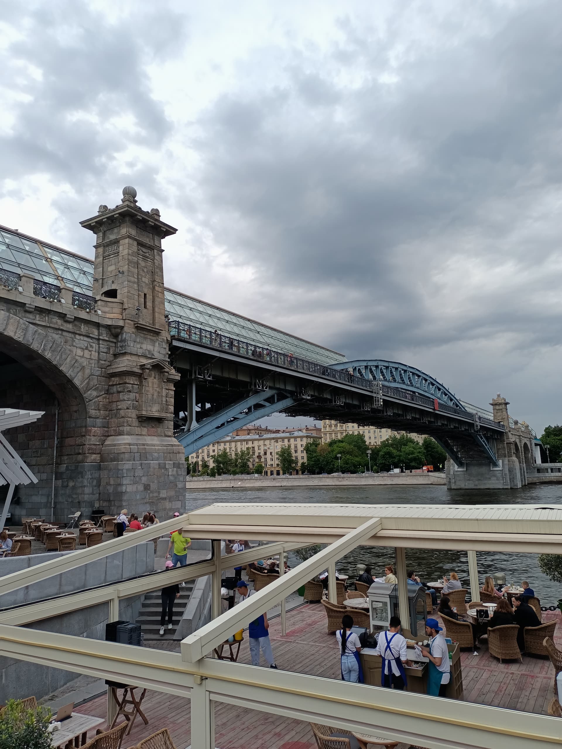 Мост был разобран, его главную арку массой в 1500 тонн погрузили на три баржи и переплавили на понтонах по воде на полтора километра вниз по течению в Парк Горького.