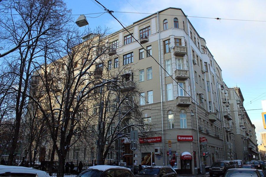 В 1912 году московский купец 2-й гильдии, один из крупнейших домовладельцев столицы Иван Михайлович Коровин заказывает известному московскому зодчему Ивану Гавриловичу Кондратенко постройку огромного доходного дома в стиле "барокко" на углу Староконюшенного и Гагаринского переулка. Заказчик не случайно обращается к этому архитектору: десятью годами раньше именно И. Г. Кондратенко выстроил особнячок для И. М. Коровина неподалеку, в Малом Власьевском переулке.
