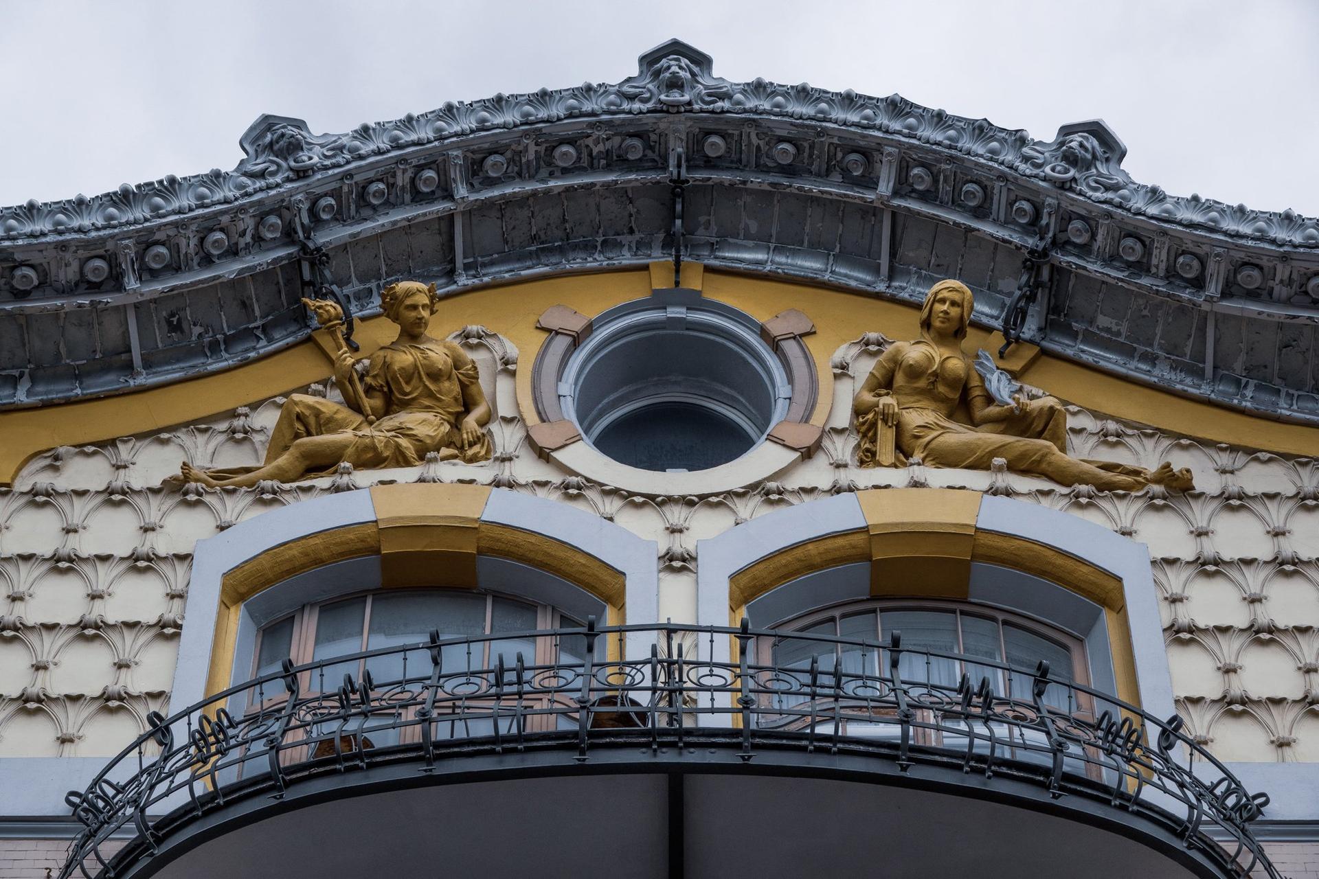 Проект архитектора Кекушева — один из лучших образцов модерна в Москве. Классическая трехчастная композиция (боковые оси - эркеры, а центр - лоджия с балконами) блестяще «разыграна» в стиле модерн, с присущейему динамичностью, гибкостью и выразительностью. Лепной декор придает верхнему этажу вид декоративного фриза, в центре которого помещено круглое слуховое окно в обрамлении двух женских фигур. Они держат в руках книгу и факел, словно подсвечивая саму идею просвещения. Обрамляет фасад мощный карниз криволинейной формы. Первоначально на кровле размещалась скульптура, теперь она утрачена. Примечательно, что оконные переплеты на каждом этаже имеют свой уникальный рисунок. Парадная лестница расположена в центре здания, разделяя его на две части, которые смещены по отношению друг к другу на пол-этажа, что позволило использовать все лестничные площадки для входов в квартиры, а также возвести в задней части дома дополнительный шестой этаж.