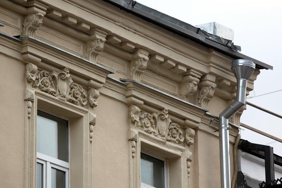 В 1887 году дом был перестроен по проекту архитектора М.Г. Пиотровича. Именно тогда он приобрел свой эклектичный декор. Центр симметричного по композиции дома выделен небольшим полукруглым аттиком с двумя мансардными окнами. Боковые фасады имеют ризалиты с выделенными окнами второго этажа с небольшими фронтонами, по бокам которых маски оскаленных львов, охраняющие покой жителей дома.