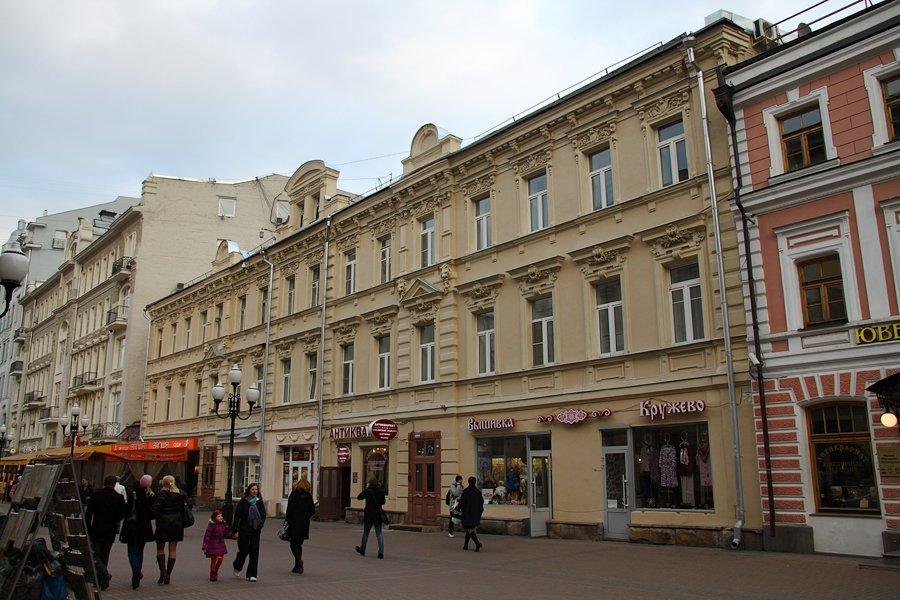 Сейчас на первом этаже дома располагаются арбатские антикварные магазины.