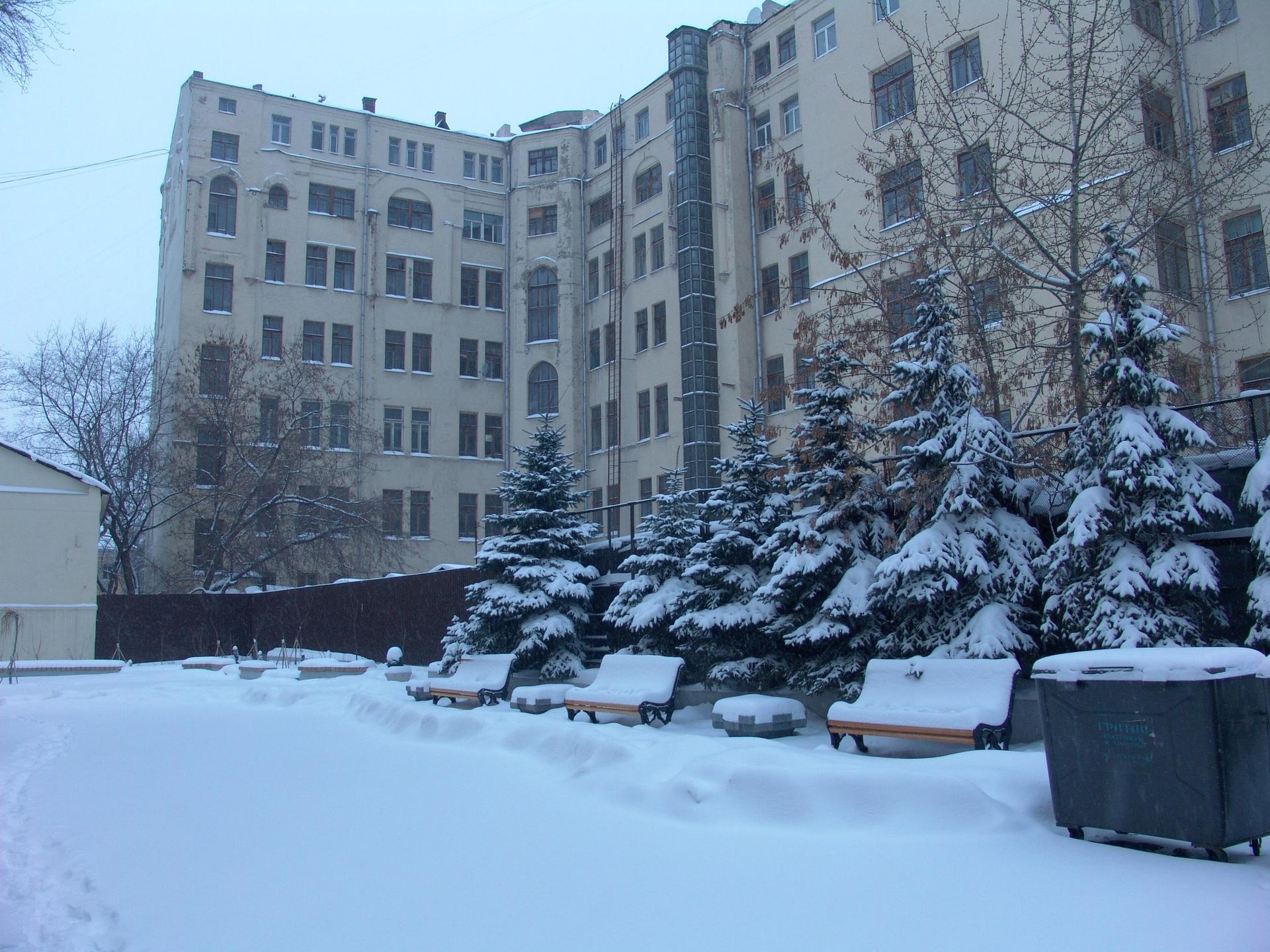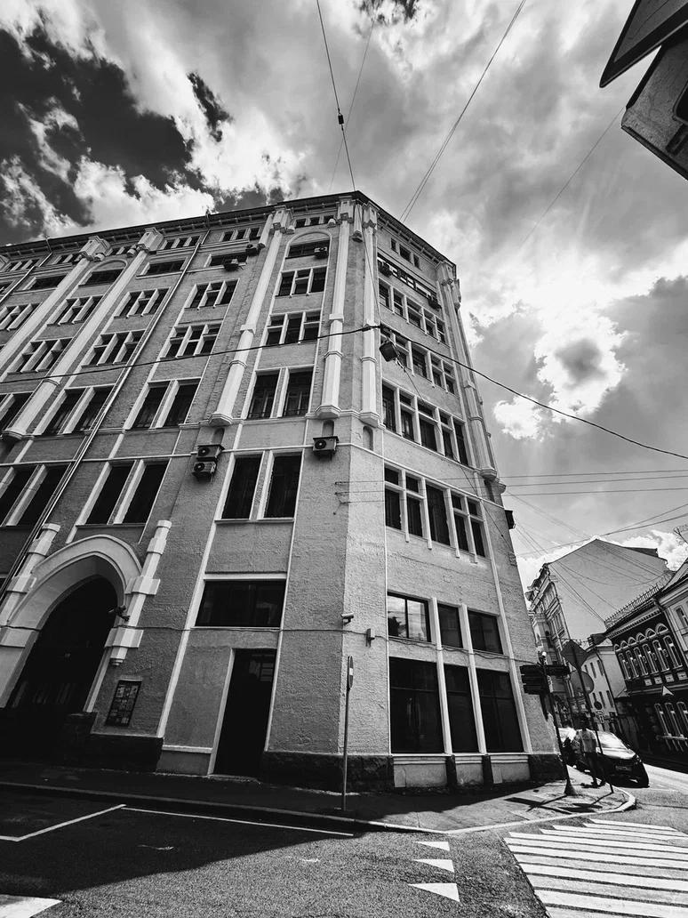 В 1915 году акционерное общество начало строительство доходного дома по проекту архитектора Валентина Дубовского. Дом планировался в стиле готического модерна с выразительным фасадным декором и просторными квартирами по 200 квадратных метров. К 1917 году были возведены пять этажей из шести проектных. Однако завершить работы помешали война и революция. В ноябре 1917 года недостроенное здание использовалось красногвардейцами как огневая позиция при штурме расположенной рядом телефонной станции.