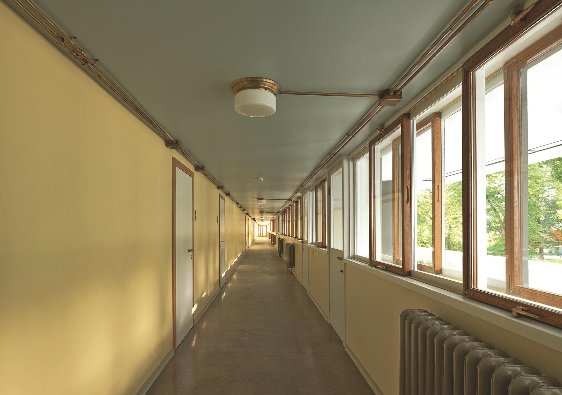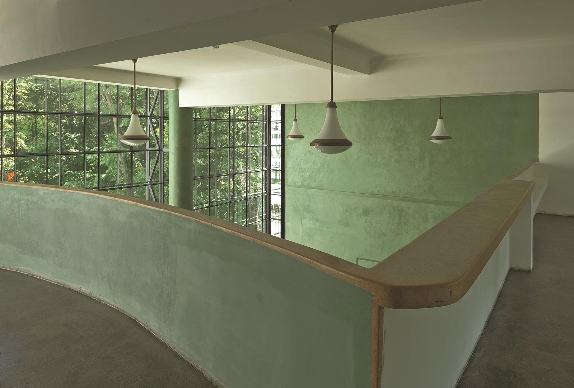 Особого внимания заслуживает система окон, разработанная специально для этого проекта. Ленточное остекление с использованием сдвижных рам позволяло максимально использовать естественное освещение и обеспечивало эффективную вентиляцию помещений.