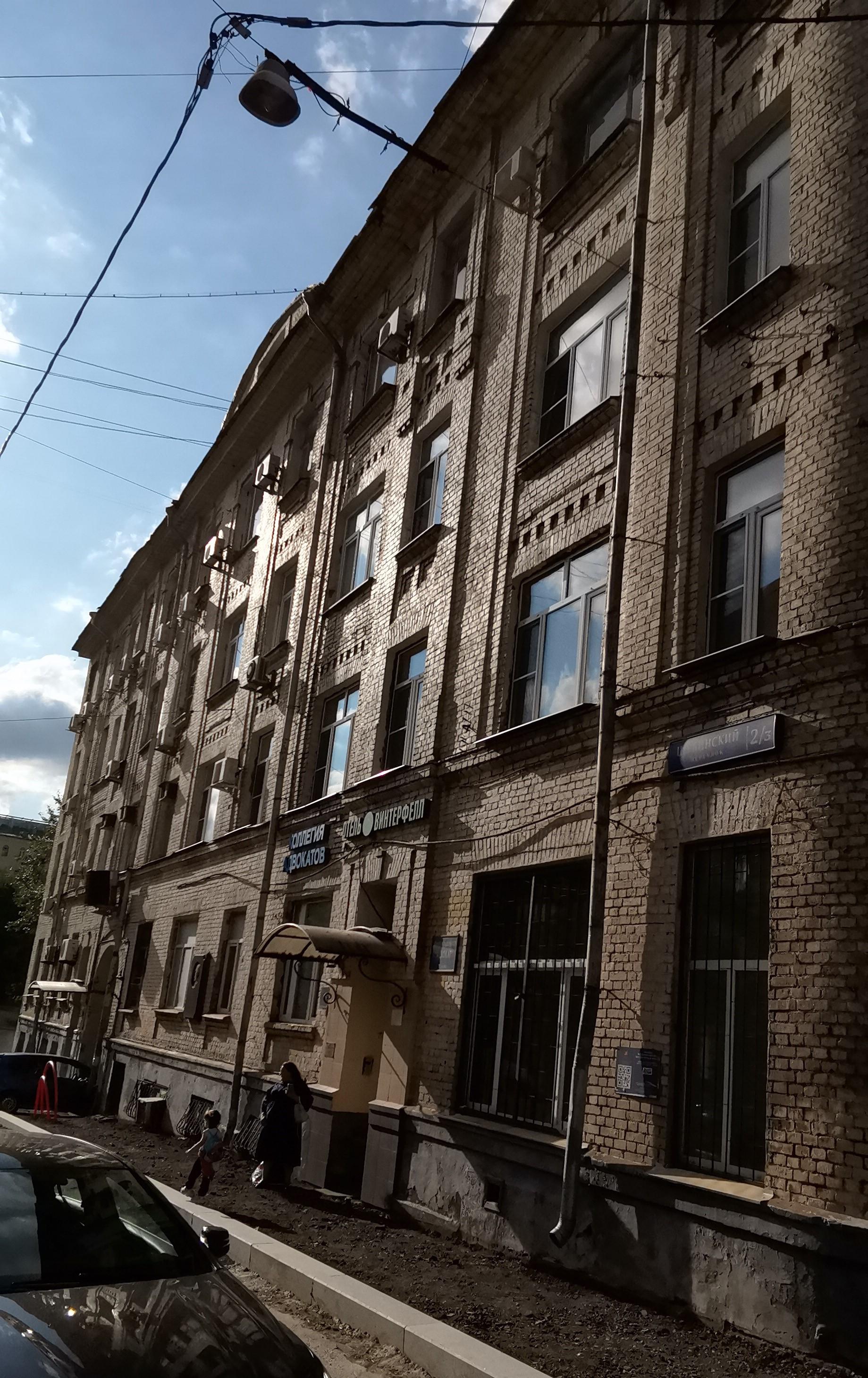 House number 2/3, forming the first angle of Smolenskaya Square and Shubinsky lane is not an outstanding by the artistic decoration of facades and original design solutions. It is rather modest four-storey brick building. It has an archway and attic room with three windows.