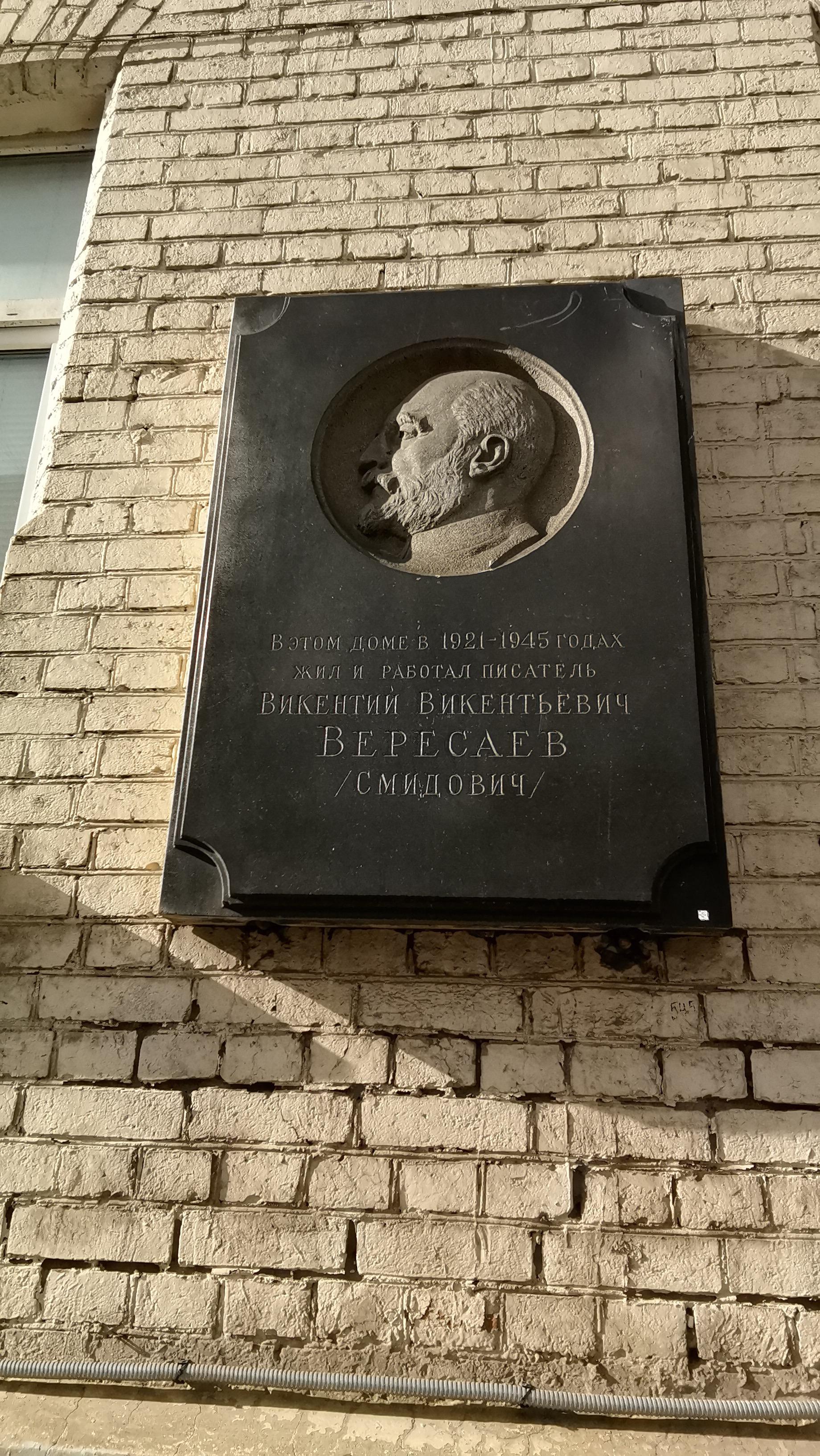 House marked a plaque with the inscription " Soviet writer V.V. Veresaev lived in this house from 1921 until his death ".The writer's apartment is recognized as an object of cultural heritage of regional importance.