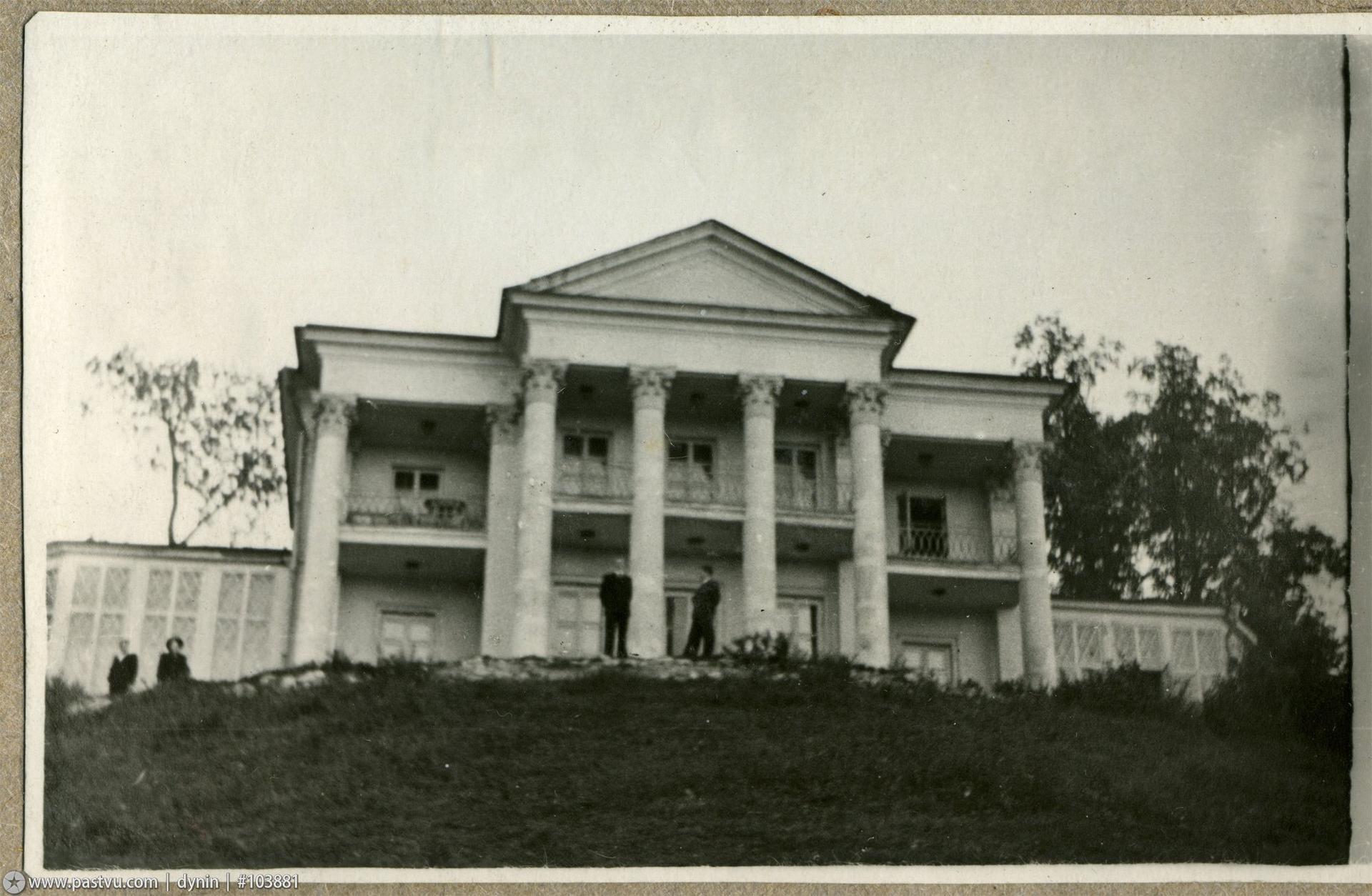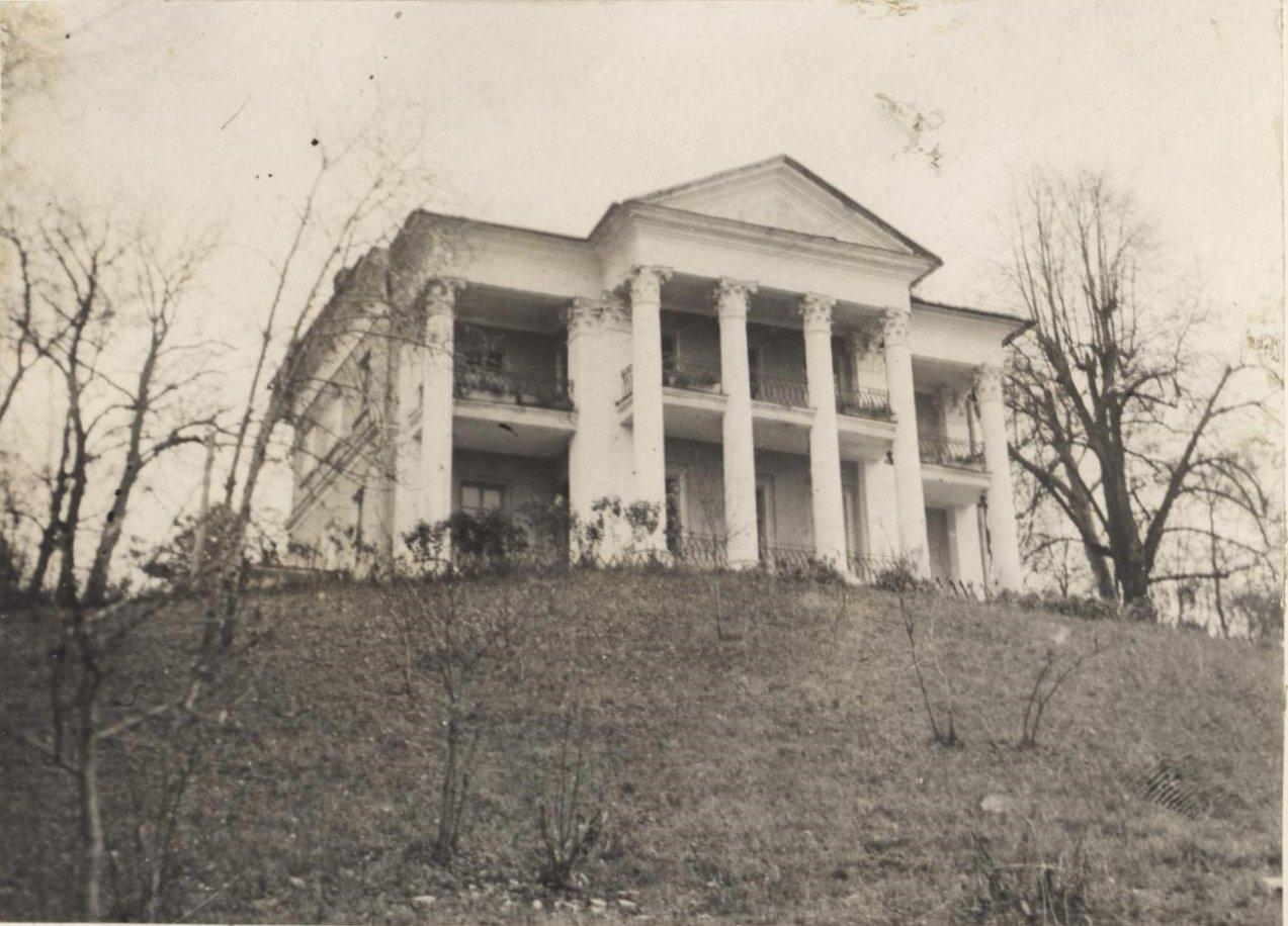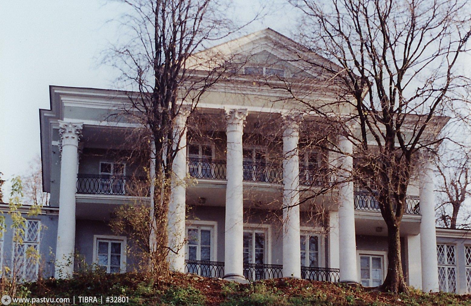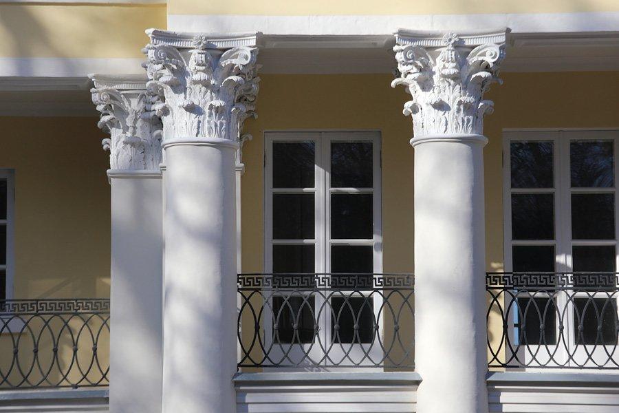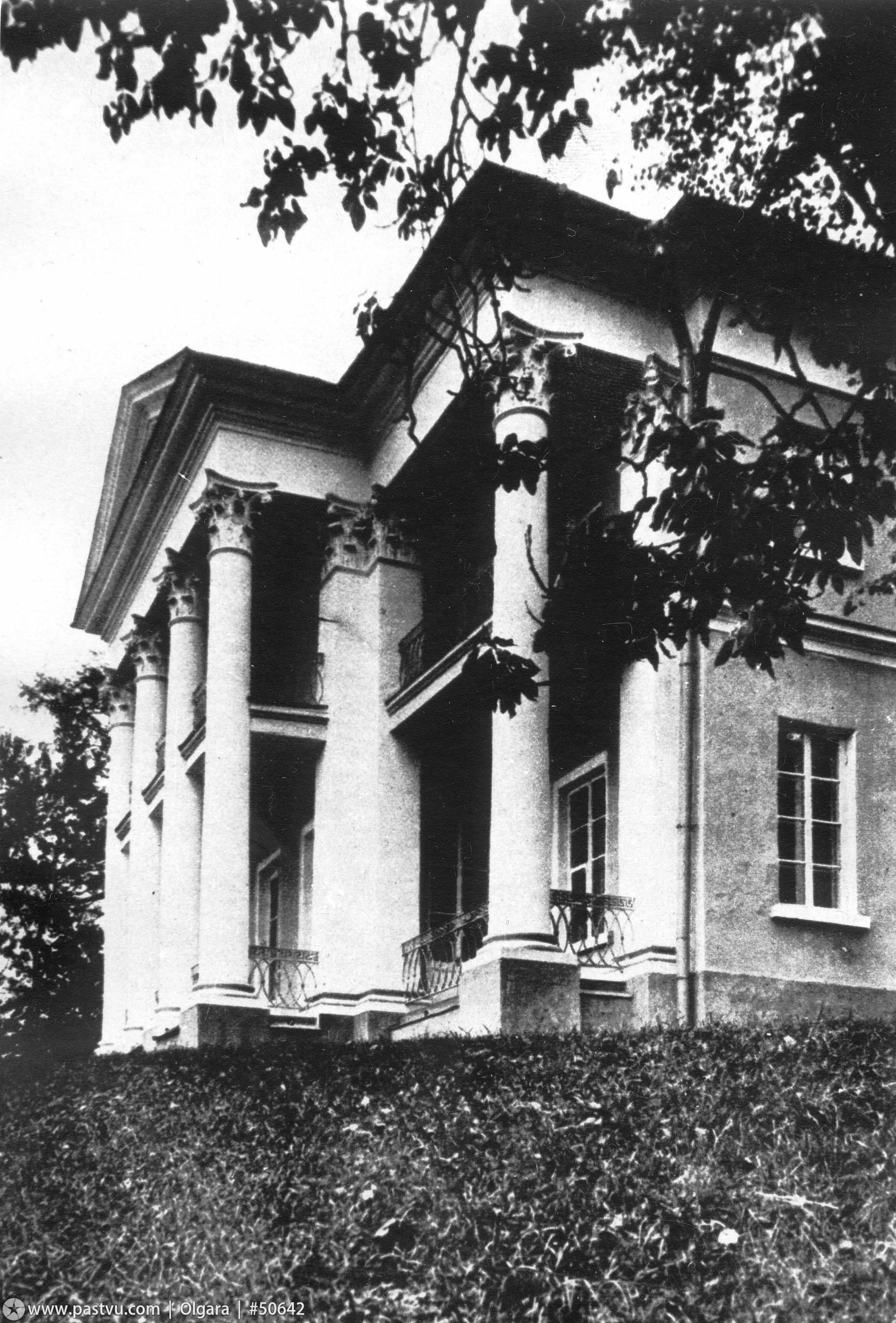 Cabin was built of wood and resolved in a spirit of neoclassical architecture - a simple symmetrical plan by six Corinthian columns each with a larger front and one-story pavilion with shutters, grilles with every small.