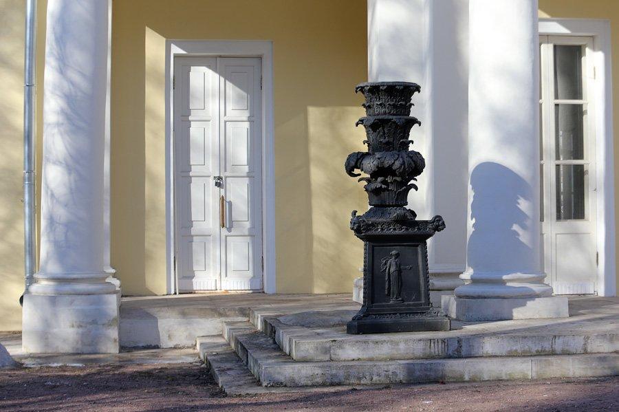 Right in front of the park lodge cool down the slope, and at the bottom of the pond was dug, arranged another " Vanny " pavilion, a romantic "Mysterious " Grotto and many other park attractions. Not all of them have survived. The most famous was the "Air Theater", hosted in 1830 and existed until 1834th - cloister semicircle ; scene has been adapted so that the decorations were replaced by trees and shrubs.