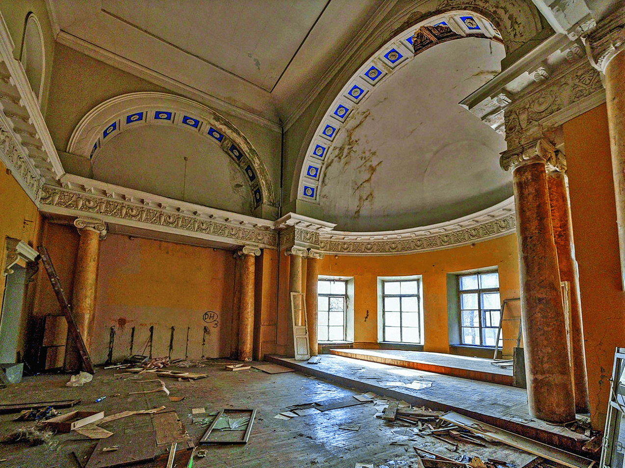 За десятилетия здание пришло в неудовлетворительное состояние: значительная часть белокаменного фасадного декора была утрачена или закрашена, настенная живопись скрыта под поздними слоями отделки, художественный паркет покрыт линолеумом, а чугунные лестницы лишились пролётов.