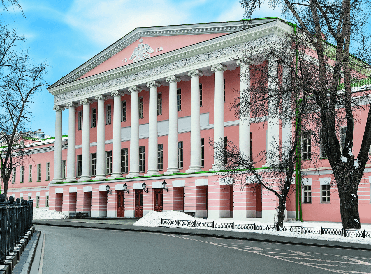 The special restauration commission headed by Joseph Bové created Moscow after the war. The mission was to restore burned buildings. Moscow owes Bové a number of restored buildings. Shopping Arcade opposite the Kremlin, Red Square reconstruction, Arena were rebuilt under his command. Gagarin’s house restored and acquired pronounced features of the Empire style in 1826, under Bove’s leadership. Three arched openings that completed the ground floor were replaced by horizontal bridges with simulated stone wedge castle masonry. Atticus over twelve white stone monumental Ionic columns were replaced by a triangular pediment in the entire width of the central body. The hospital was called New Catherine’s and was opened in the building In 1833. It was renamed into 24th city hospital in 1917 and existed here until 2008.
