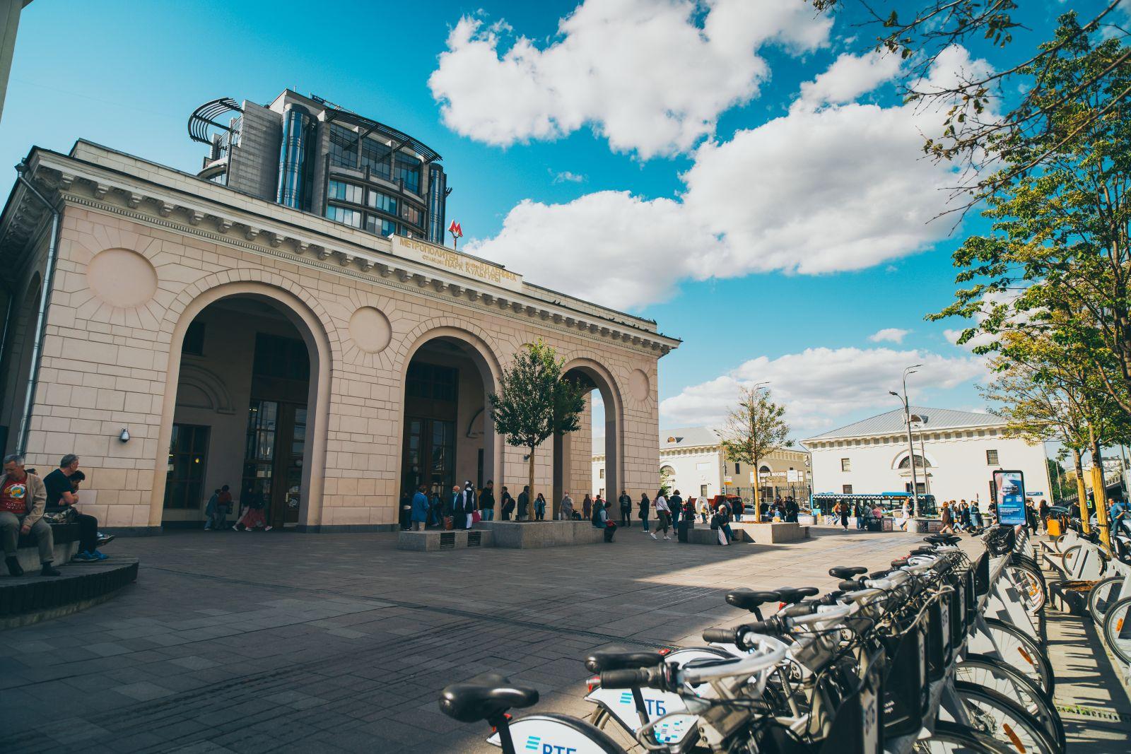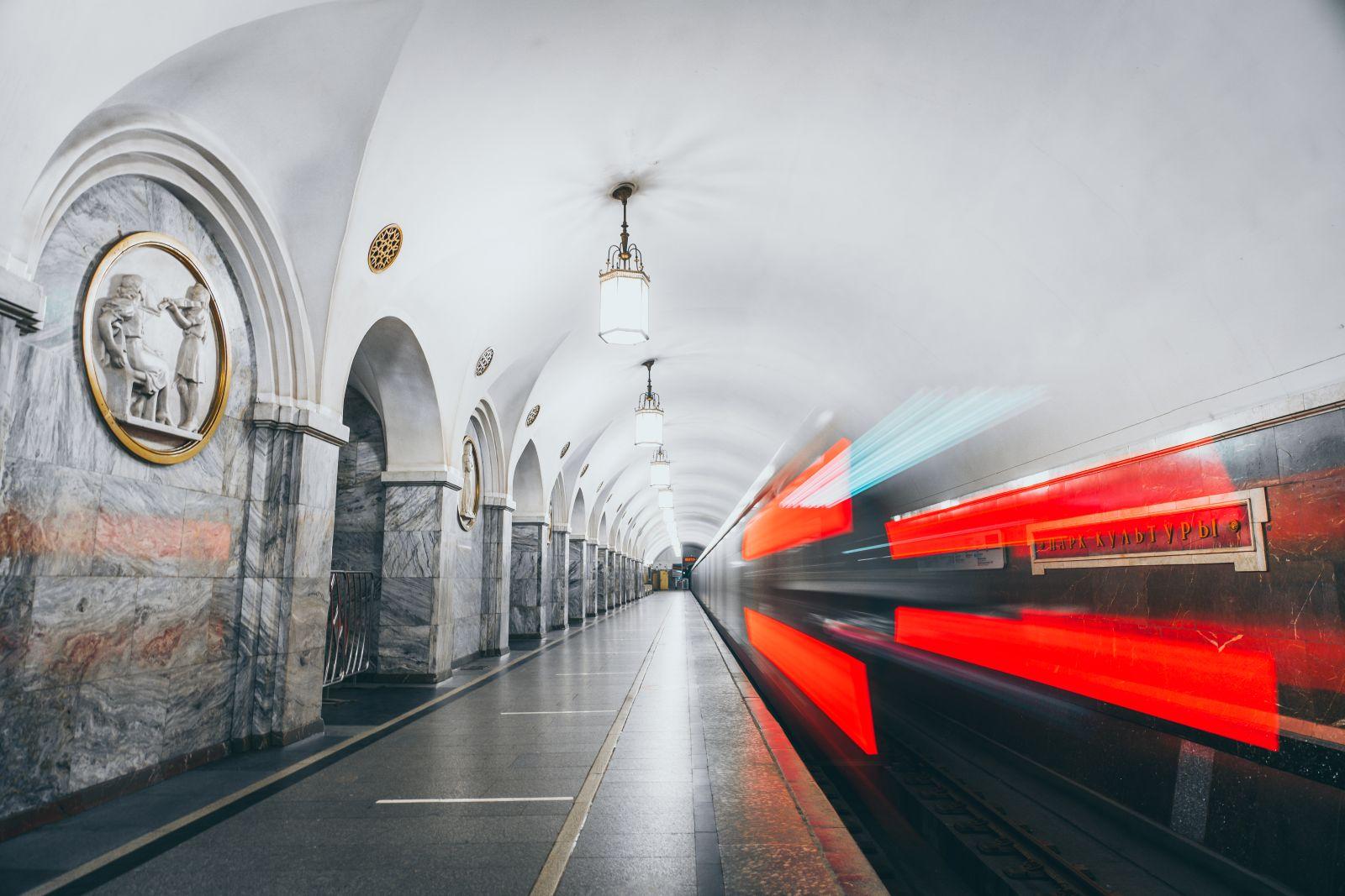 This is a pylon three-vaulted station of deep laying. Architect I.E. Rozhin tried to visually lighten the massive pylons with the great success. Each pylon is "cut" by stepped arches, visually transforming it into four columns standing on the corners. Medallions by sculptor S.M. Rabinovich are located in each of the arches. There are 26 bas-reliefs, 12 of which are duplicated. They depict various kinds of leisure and recreational facilities available to the Soviet people in the park (skating, chess, aeromodelling, floriculture, football and others).