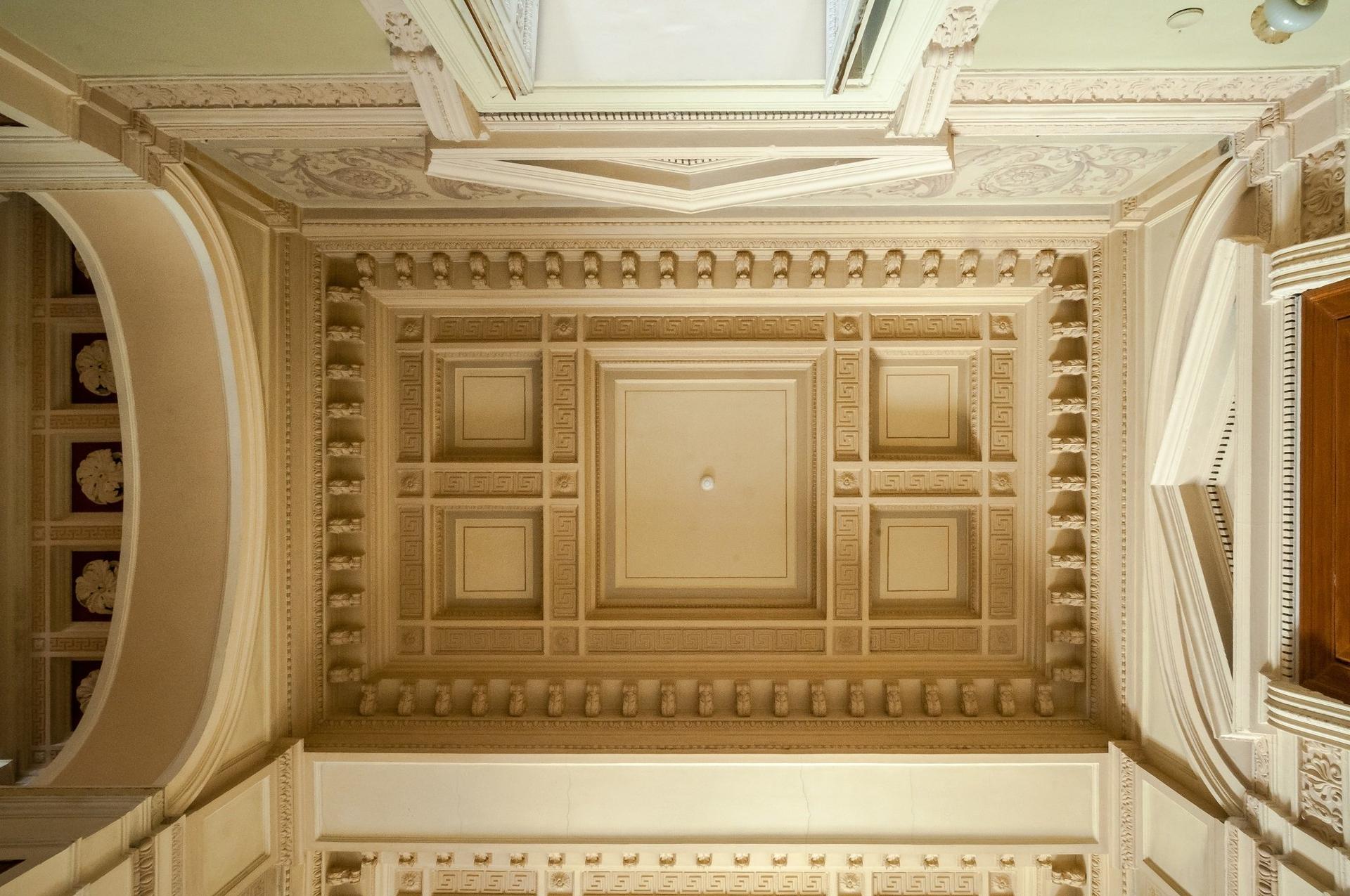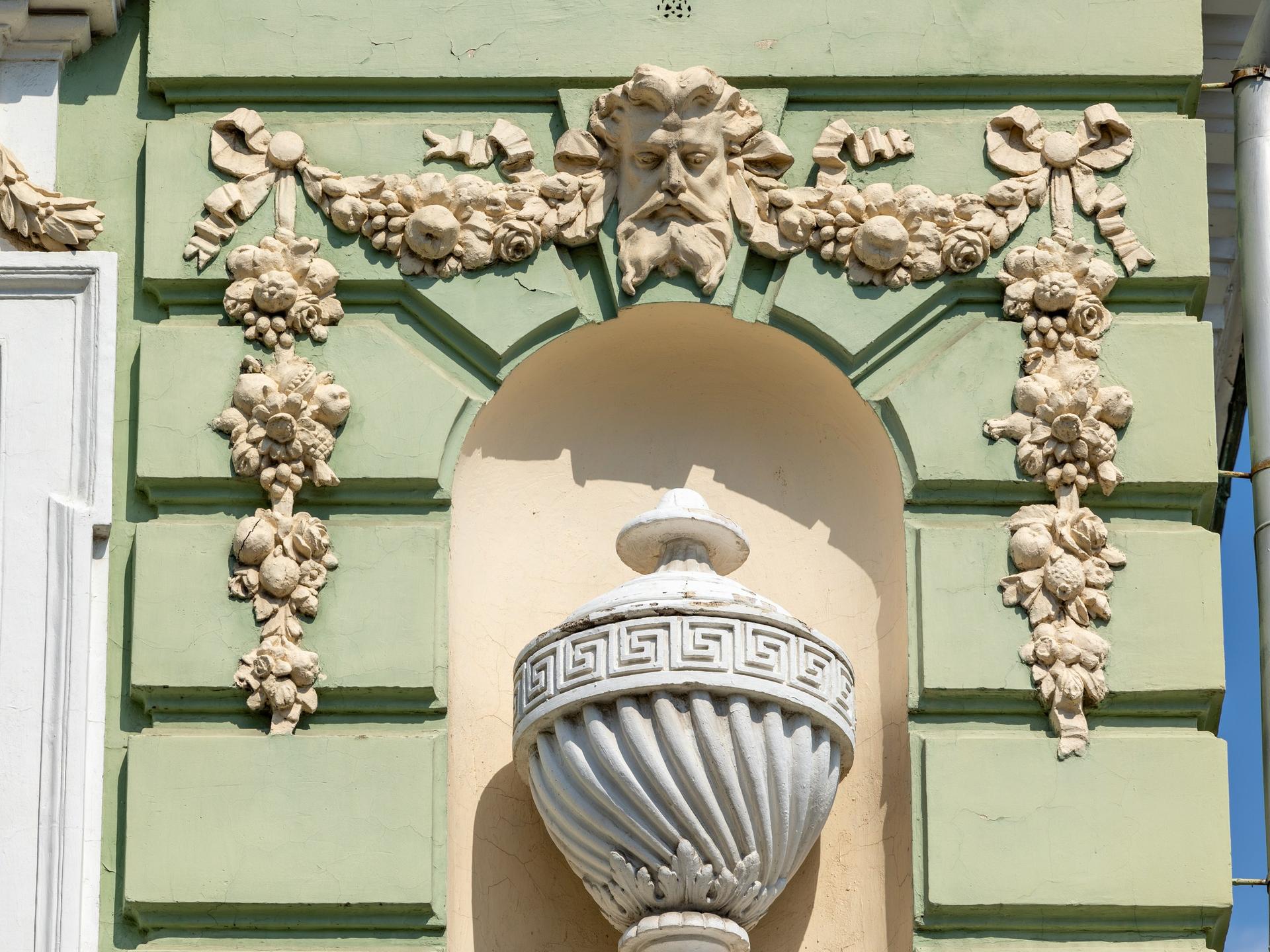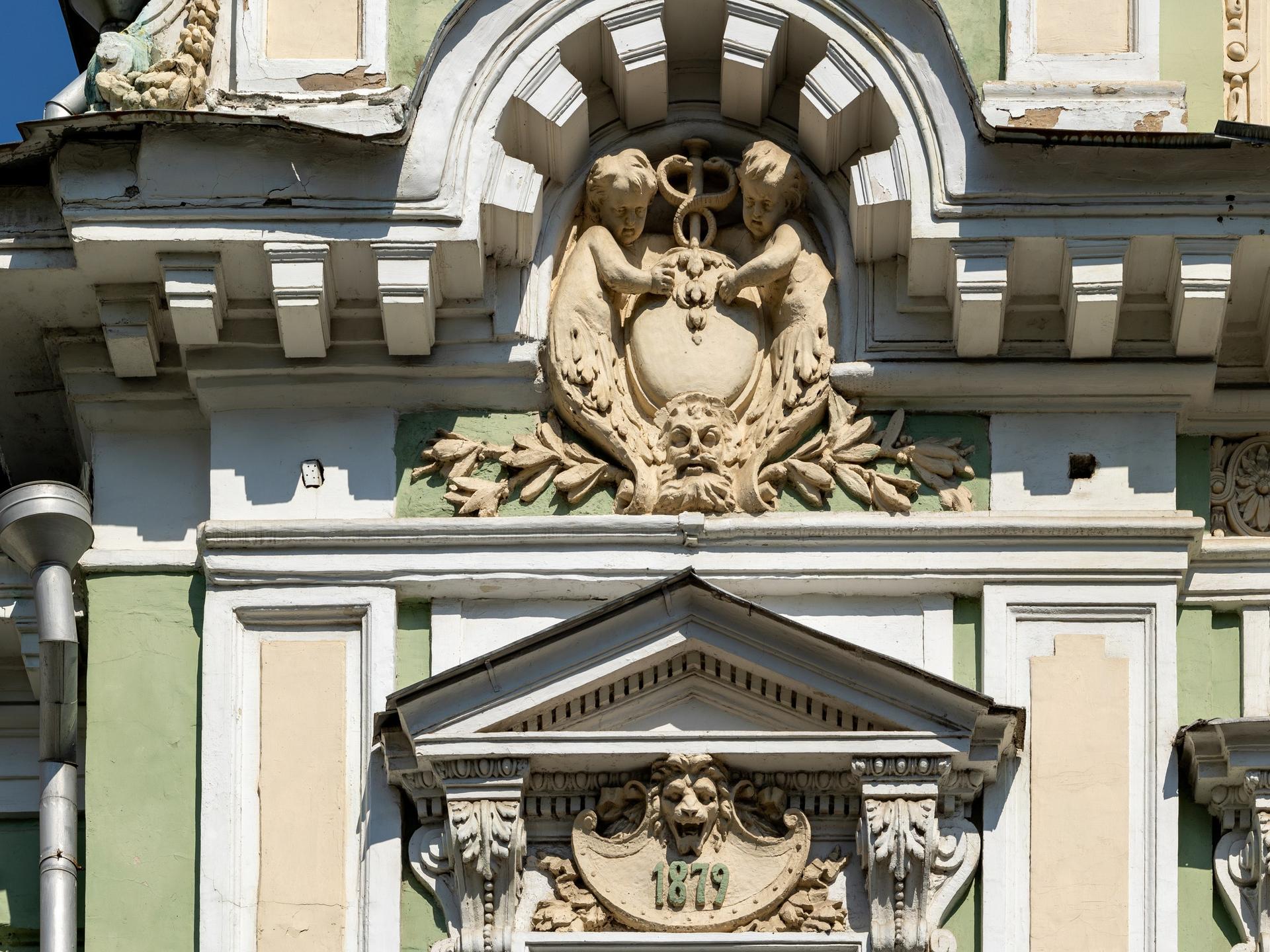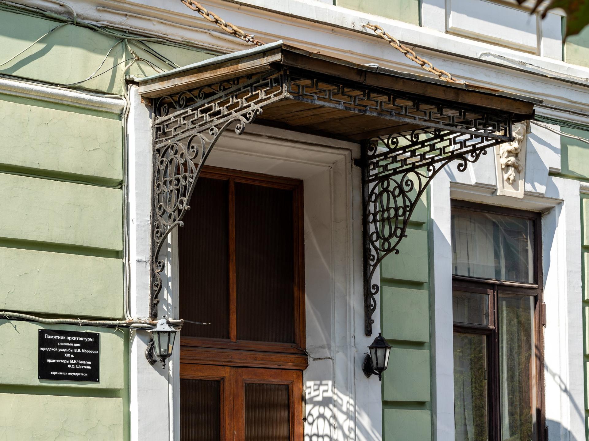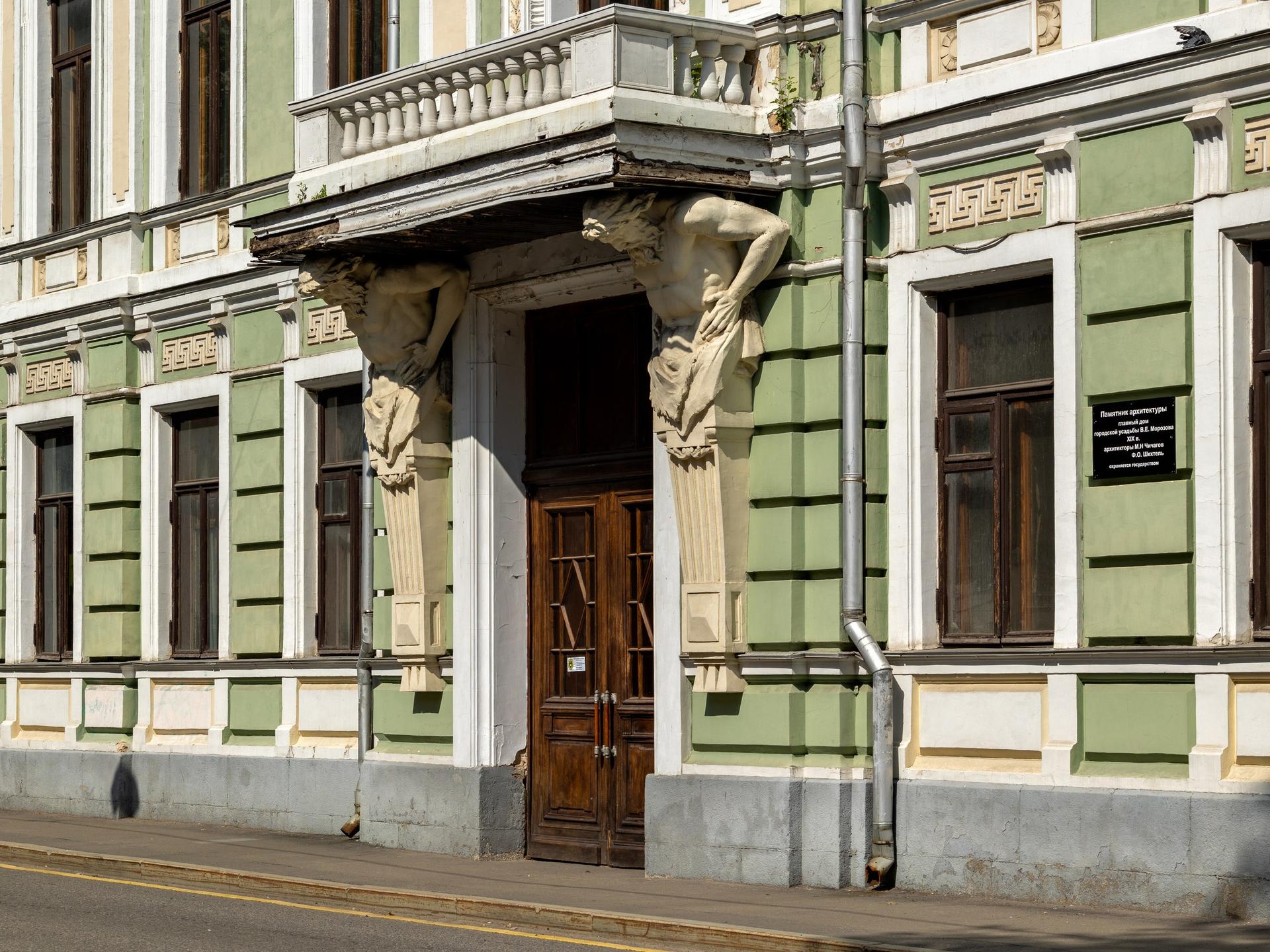 The estate on Podsosensky (formerly Vvedensky) Lane is first mentioned in the records in the late 18th century. It still keeps ancient chambers that used to be the estate (this building had three storeys added to it during the Soviet times). The estate was initially owned by the Plavilshchikovs, a family of industrialists. In 1839 they sold it to Elysey Morozov, a member of the well-known Russian merchant dynasty. In 1878-1879 Elysey’s son Vikula, who inherited the estate, built a new house for his family here, along the frontage line of the lane. Designed by the architect Mikhail Chichagov, the new house was constructed in the eclecticism style, with a bright facade covered with rustication and adorned with exquisite plasterwork. The main attic of the house bears a cartouche with the letter ‘M’ (for the Morozovs) on it. The main gate of the estate is in the same style. The interiors were designed in a range of varying styles, including Neoclassicism, Russian style, and Renaissance.