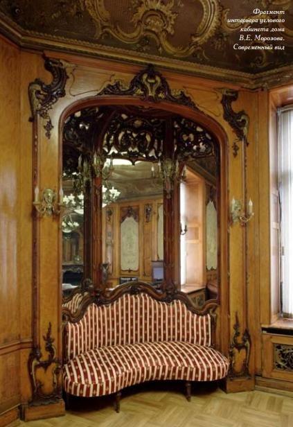 В 1895 году усадьбу унаследовал Алексей Викулович, старший сын Викулы Елисеевича. Он пожелал переделать убранство некоторых помещений особняка в соответствии со своими вкусами, для чего пригласил молодого, но уже успевшего заявить о себе архитектора Федора (Франца) Шехтеля. В списке работ Шехтеля уже были постройки, выполненные им для разных представителей морозовской династии (загородная усадьба Викулы Елисеевича Одинцово-Архангельское, особняк Саввы Тимофеевича на Спиридоновке, подмосковная дача Ивана Викуловича). Созданное Шехтелем внутреннее убранство особняка Алексея Викуловича Морозова – одна из вершин творчества архитектора, демонстрирующая его оригинальный талант и высокий уровень мастерства, которые и сделали его одним из самых ярких и самобытных зодчих своего времени.