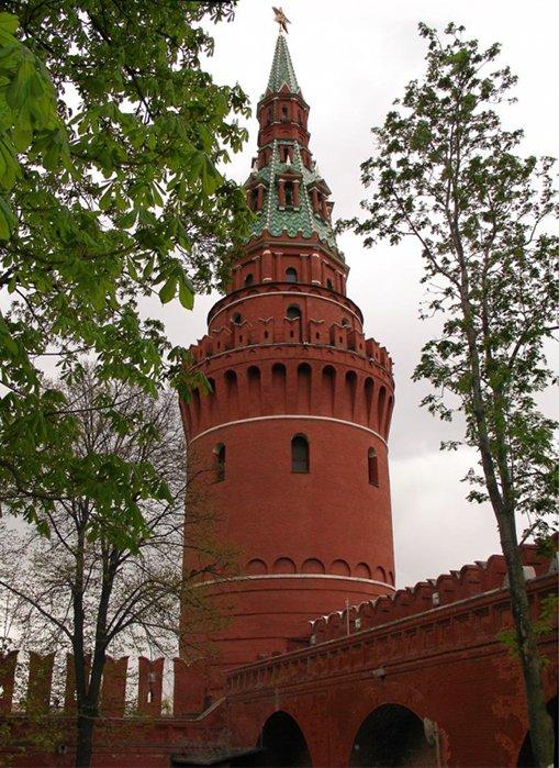 The Vodovzvodnaya Tower had a secret underground passage towards the Moscow River. In 1633, Christopher Galloway installed a water-pumping machine inside the tower to take water from the Moskva River and send it along lead-coated pipes to the Kremlin Gardens. After that, the tower was called the Vodovzvodnaya (Water-Supplying).