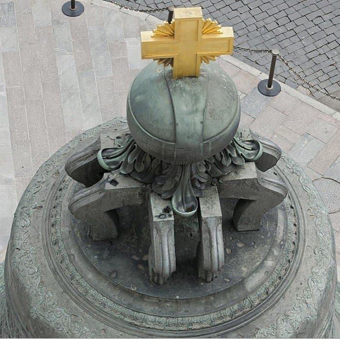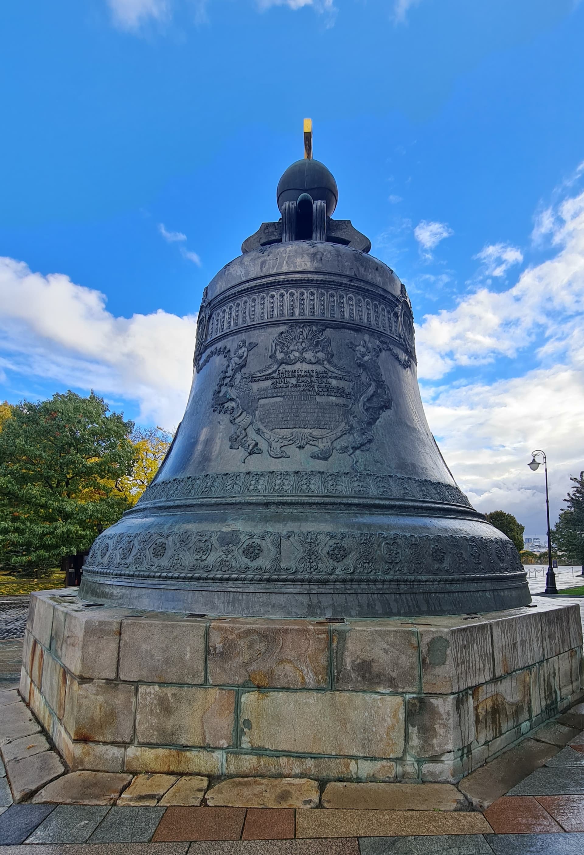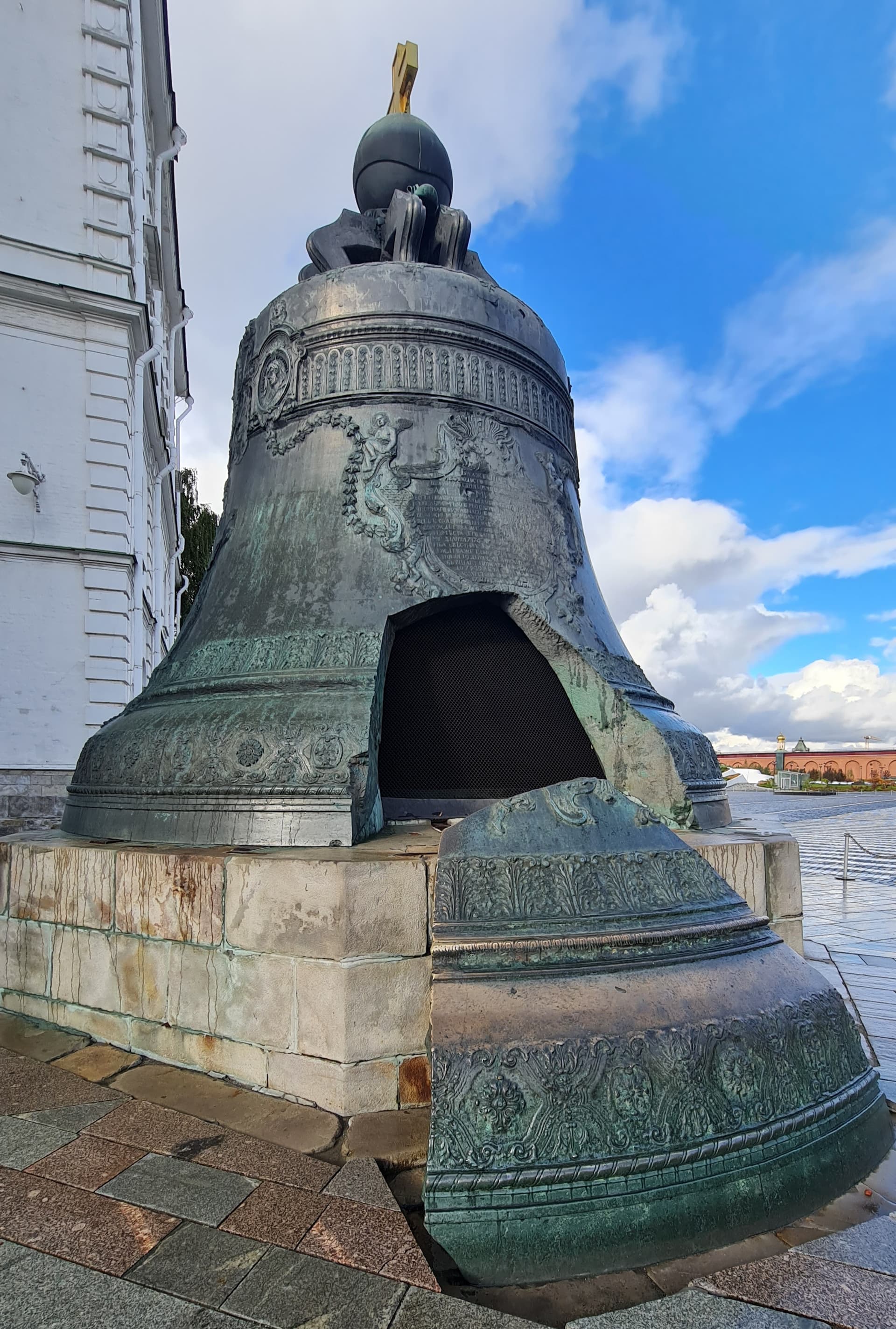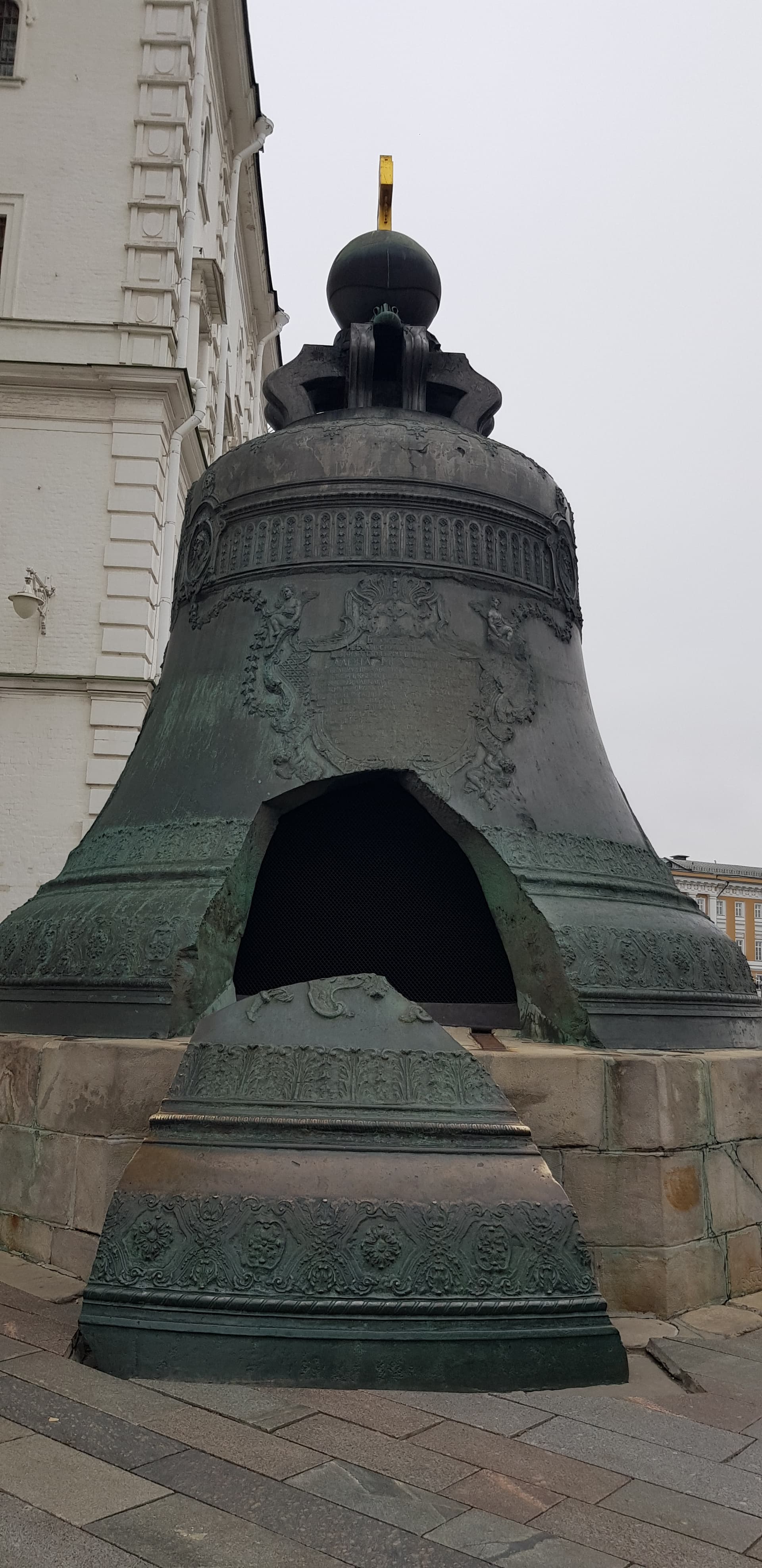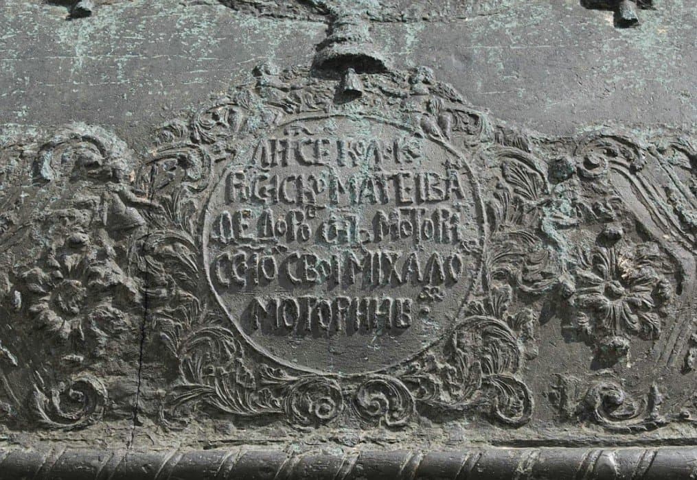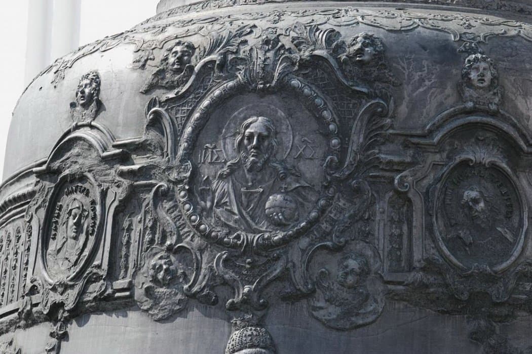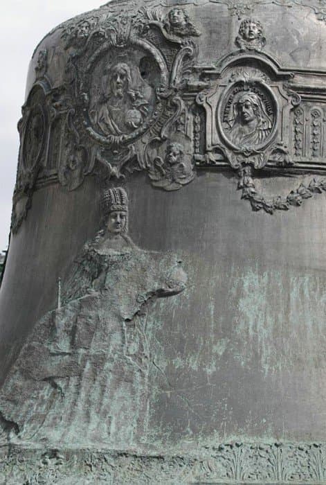 В целом декоративное убранство Царь-колокола — образец искусства барокко, в котором нашли отражение тенденции русского изобразительного искусства первой половины XVIII века и итальянская выучка скульптора. Скульптор Ф. Медведев, некогда посланный Петром I для обучения в Венецию, украсил литейную форму множеством орнаментов, надписей и рельефными фигурами Алексея Михайловича и Анны Иоанновны, которые надо было очистить и прочеканить. Поэтому колокол так и оставался в яме, на решетчатом помосте, до 1737 г., когда в Кремле в очередной раз разбушевалась огненная стихия. Над литейной ямой вспыхнула деревянная кровля, а при тушении огня водой колокол неравномерно охладился и треснул. Вначале его думали перелить, но по составленной смете расходы оказались больше, чем затратили на первоначальную отливку. Затем возник проект (правда, вряд ли осуществимый) припаять отколовшийся край, однако автор проекта, архитектор Форстенберг, умер от чумы 1770 г. Тем временем колокол продолжал оставаться в яме. В 1821 г. по повелению Александра I яму расчистили и спустили в нее лестницу для удобства любителей достопримечательностей. На поверхность земли Царь-колокол извлекли только в 1836 г., водрузили на постамент и приварили сверху проушины-кронштейны, несущие державу с крестом; механизмы для подъема колокола сконструировал строитель Исаакиевского собора в Петербурге, архитектор и инженер О. Монферран.
