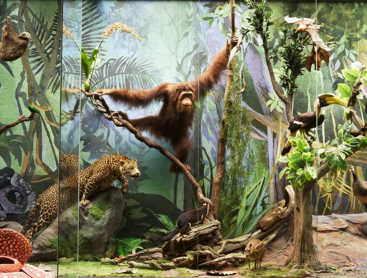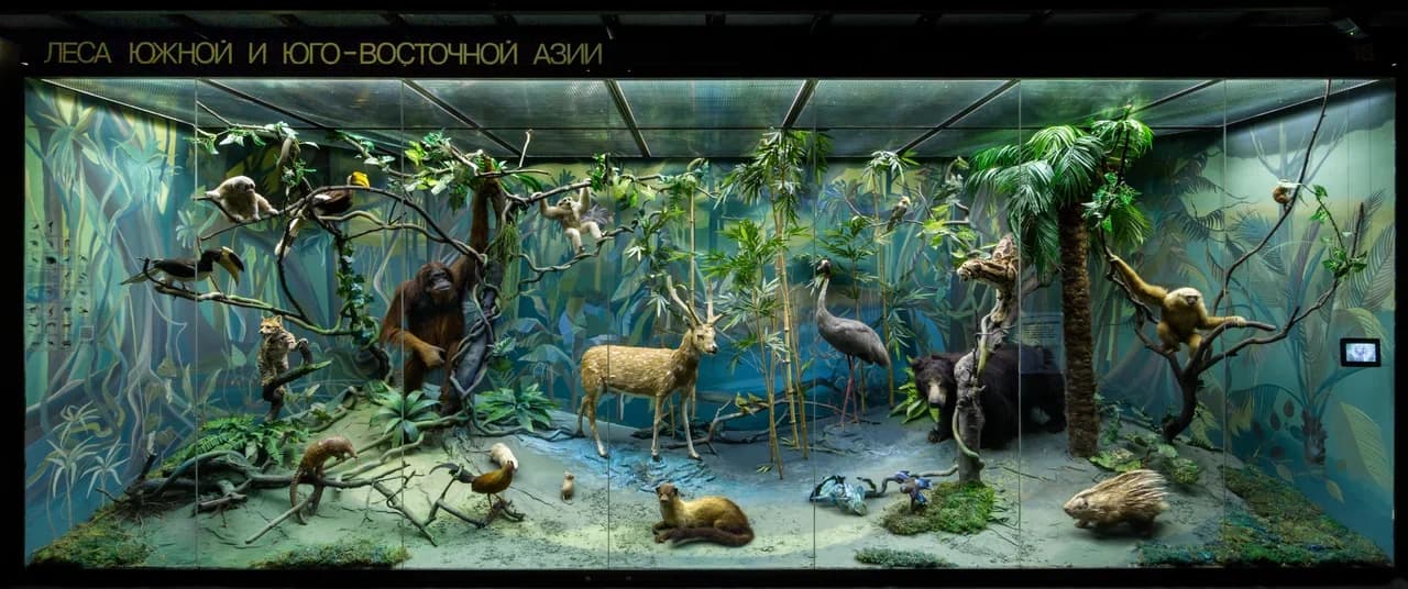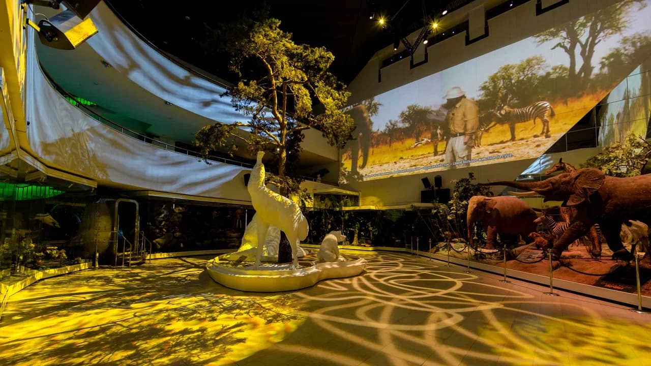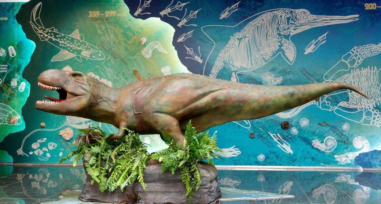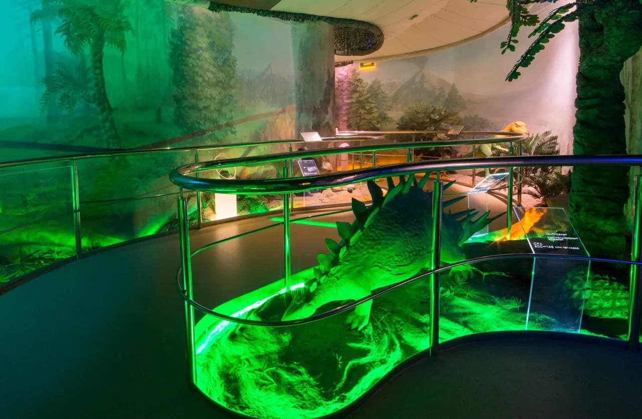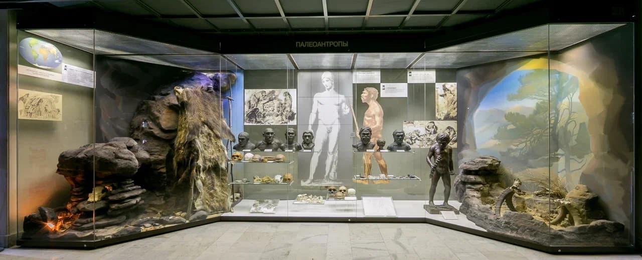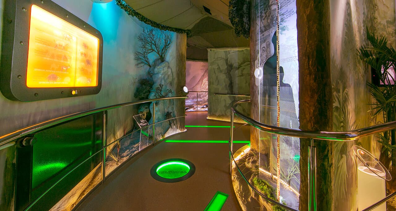 Интерактивная экспозиция «Пройди путем эволюции» предлагает совершить путешествие в прошлое, пройдя по лабиринту времени путь от зарождения первых живых организмов до становления человеческого рода. Эффект погружения в среду достигается за счет использования современных мультимедийных технологий.