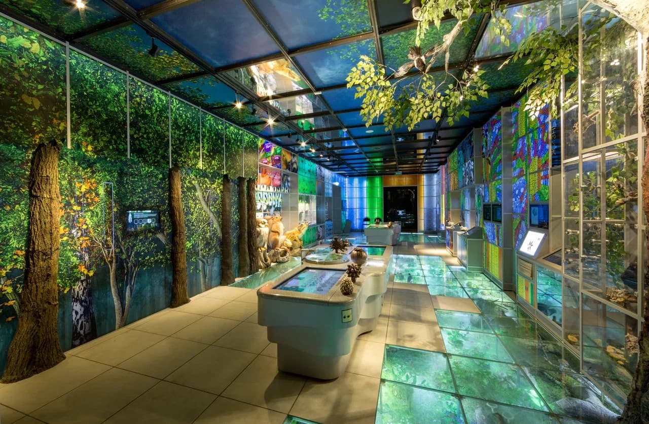 В выставочном корпусе, соединённом с основным подземной галереей, 7 этажей, летом из оранжереи можно выйти на крышу. На каждом этаже расположена новая тематическая выставка.