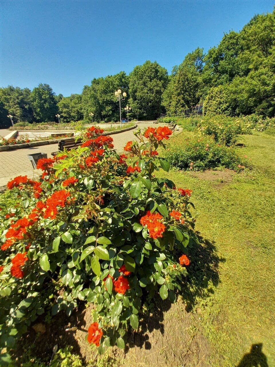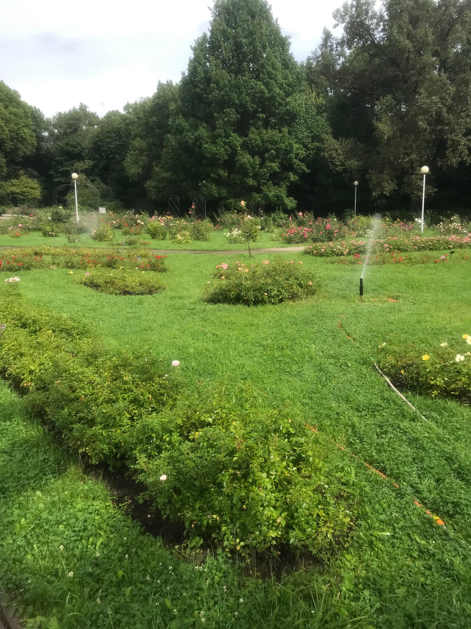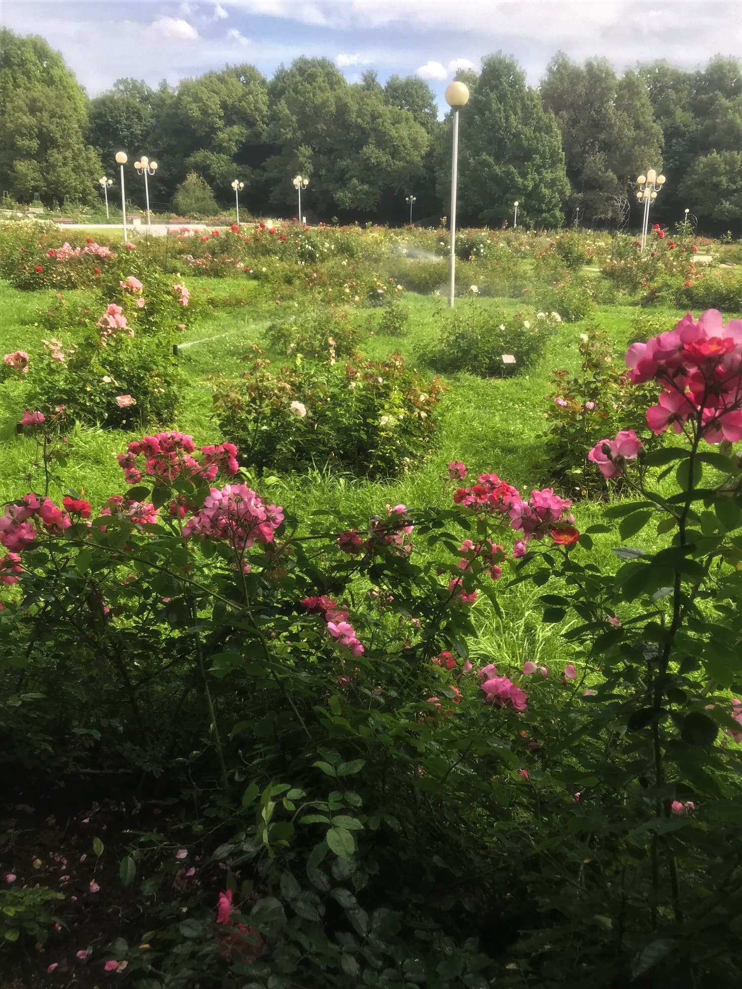 Регулярный сад с элементами свободной планировки в юго-западной части Главного ботанического сада им. Н.В. Цицина РАН в районе Останкино. Розарий с трех сторон обрамлен дубравой, а его площадь составляет около 2,5 гектаров.