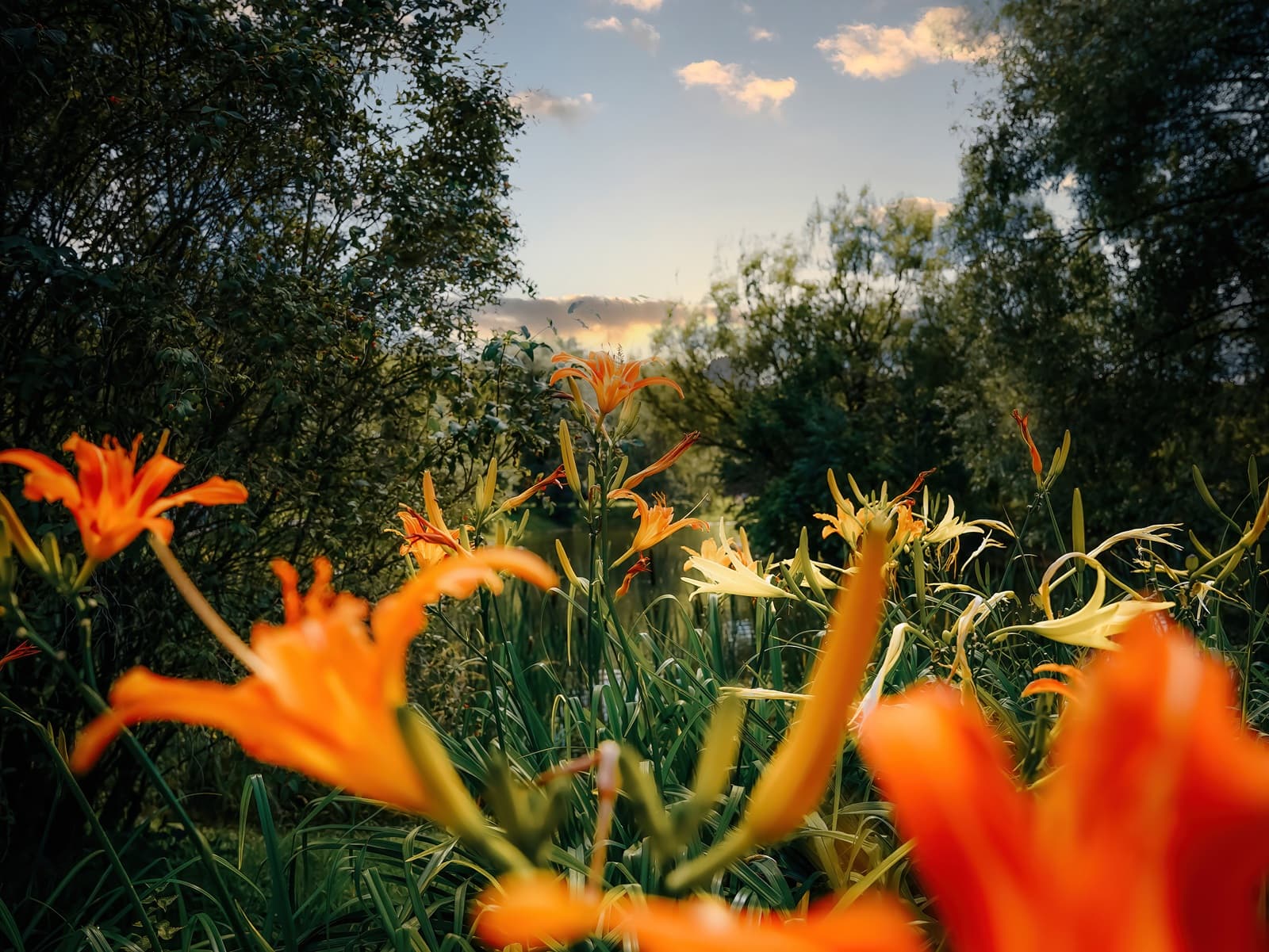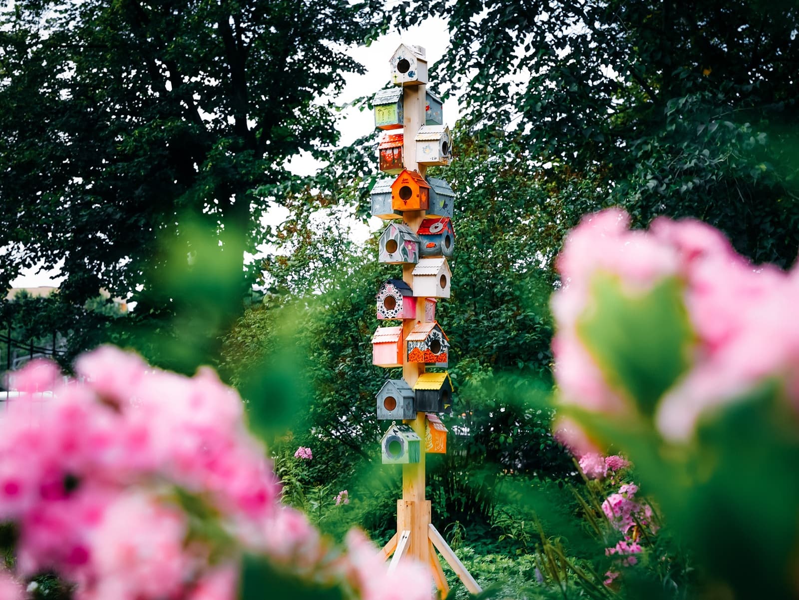 Весну открывает цветение ярко-жёлтой форзиции. Сакура распускается в конце апреля — начале мая всего на несколько дней, как и на родине, после чего зацветают рододендроны, спирея Вангутта и древовидные пионы.