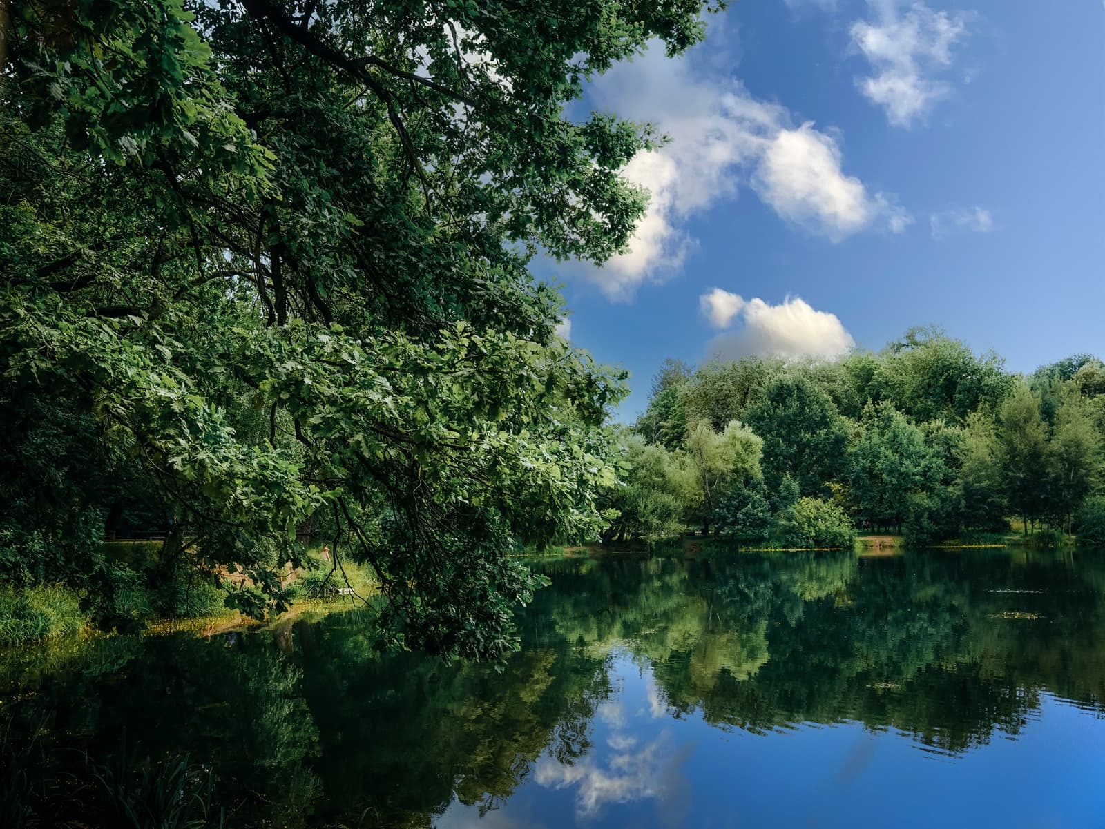 Главная аллея соединяет храм с прудом, образуя композиционную ось парка. Тщательно ухоженные дорожки, украшенные галькой и песком, ведут сквозь аллеи вековых ясеней, дубов и клёнов. Некоторые из них имеют возраст более двухсот лет, а два дуба, которым около 350 лет, стали живыми памятниками усадебной эпохи. Эти исполинские деревья сегодня огорожены и снабжены табличками с краткой историей, вызывая у посетителей неподдельное восхищение.