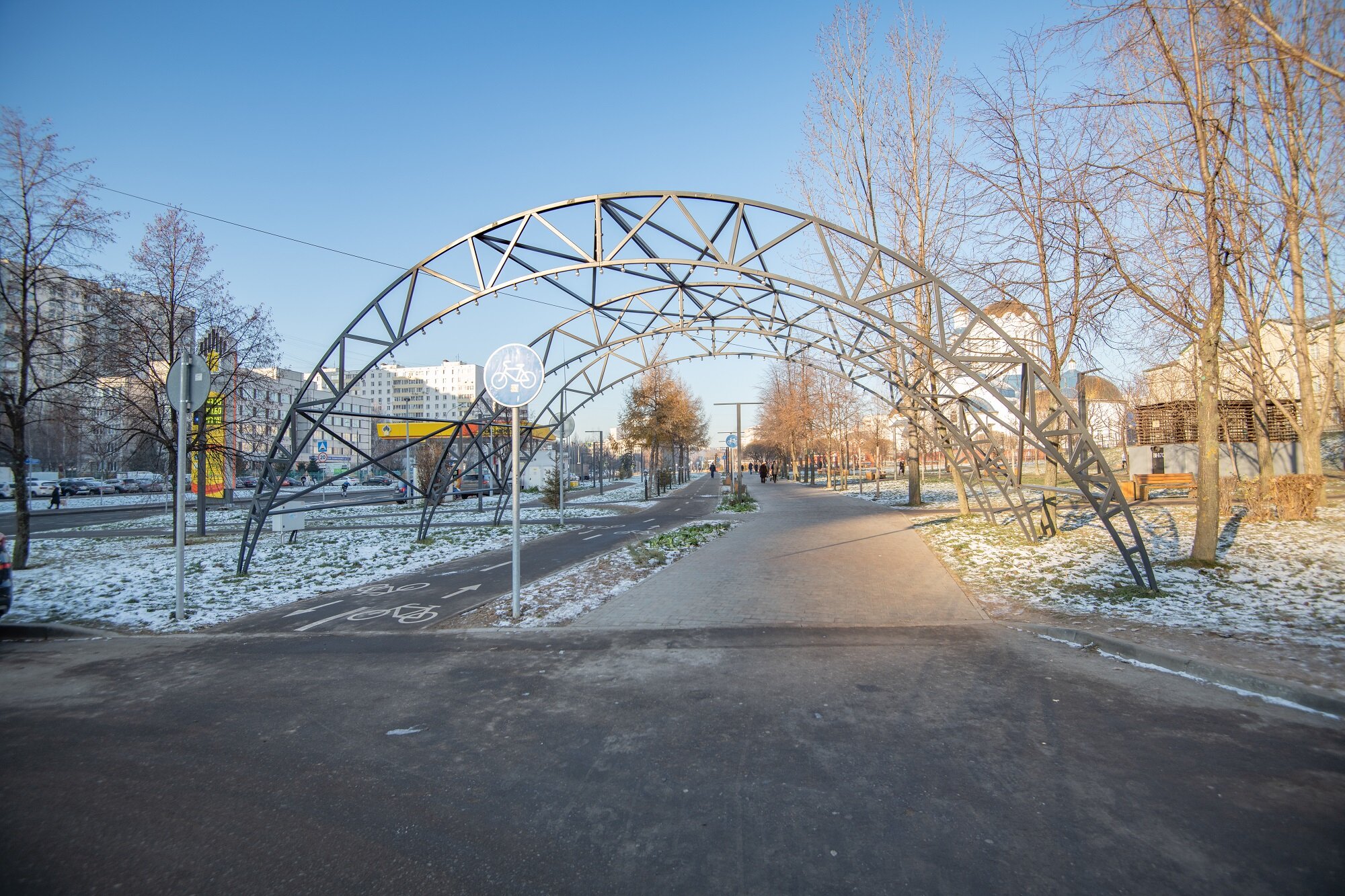 На территории появилось более сотни новых светильников, круговые качели со светодиодной подсветкой для детей и взрослых, а также «светящиеся» детские и воркаут-площадки.