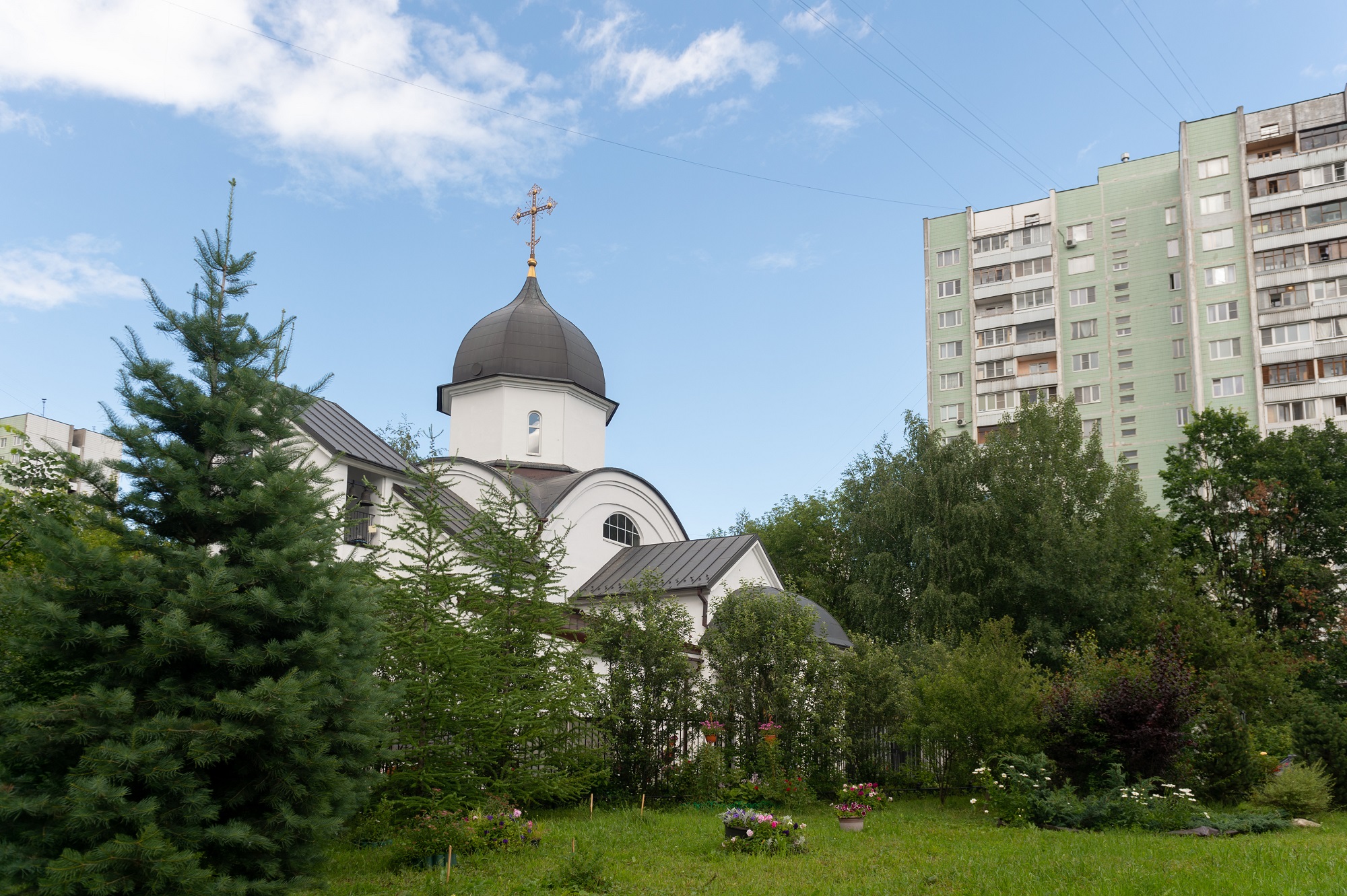 По правой стороне от нас виднеется небольшая белая церквушка, затесавшаяся между многоэтажками. Перед нами – церковь иконы Божией Матери «Живоносный Источник». Ее строительство началось в 2003 году, а 2 мая 2008 года, в день празднования иконы Божией Матери «Живоносный источник», церковь освятили. Этот храм очень любим местными жителями. Правда, из-за небольших размеров он не всегда может вместить всех прихожан, но это не мешает им регулярно участвовать в богослужениях. На территории храма также находится источник с освященной водой.