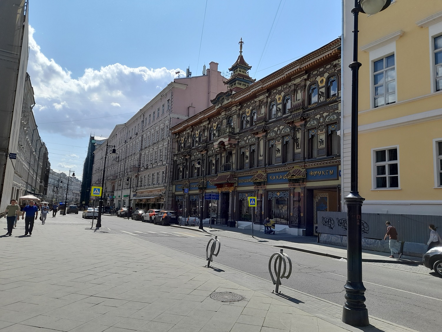 Завершить нашу прогулку предлагаем на Малой Грузинской улице. В районе к востоку от современной Грузинской площади располагалось основанное в 1681 году дворцовое село Воскресенское. Эту местность выбрал царь Фёдор Алексеевич для строительства нового загородного дворца с домовой каменной Воскресенской церковью; поблизости возникло поселение, где жила дворцовая прислуга. В 1729 году территория по соседству с селом была пожалована грузинскому царю в изгнании Вахтангу VI, приехавшему в Москву с многочисленной свитой; так на Пресне возникла слобода Грузины, память о которой сохраняется в названиях Большой и Малой Грузинских улиц, улицы Грузинский Вал, Грузинской площади и Грузинского переулка.