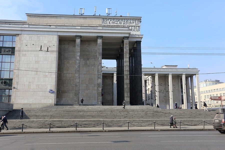 Здание крупнейшей в стране библиотеки, прямо напротив входа в Кремль, строили в результате большого архитектурного конкурса. Академик Щуко из Петербурга вместе с архитектором Гельфрейхом разработали сложный комплекс из шести зданий, образующий систему дворов, колоннад и формирующих своеобразный новый римский форум для пролетарской столицы. Над созданием скульптурного убранства трудились большая группа, в том числе такие скульпторы, как С.А.Евсеев, М.Г.Манизер, Е.А.Янсон-Манизер, Н.В Крандиевская, В.В Лишев, В.И. Мухина.