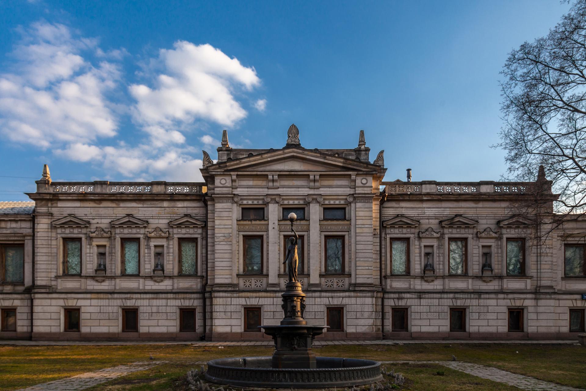 В 1890-е годы купец 1-й гильдии золотопромышленник Николай Дмитриевич Стахеев приобрёл обширный участок на Новой Басманной улице с усадьбой второй половины XVIII века. Особняк являет собой яркий пример эклектики: фасады здания выполнены в «греческом стиле», залы – в стиле классицизма, барокко, готики, рококо. В отделке интерьеров поражает тщательная проработка деталей, прекрасные витражи, инкрустированные паркеты, оригинальные шёлковые обои на стенах, мраморная и лепная отделка. Впечатляет красотой хитросплетения восточных орнаментов на стенах и потолке «мавританской» курительной комнаты, оконные откосы в которой выполнены из цельного массива редких пород камня. На лужайке перед домом находится действующий до сих пор фонтан «Богиня ночи» с чугунной женской фигурой, держащей в руке электрический фонарь, изготовленный в парижской мастерской в конце XIX века.