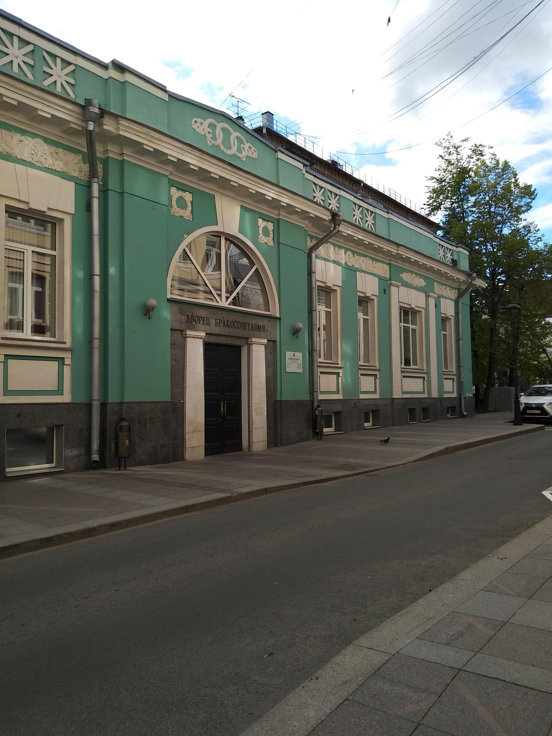 Красивый особняк, возведённый по проекту архитектора С.Ф. Воскресенского в далёком 1909 году, сейчас более знакомый многим москвичам как Дворец бракосочетания № 1, называемый в народе «Грибоедовский», имеет очень интересную историю. Изначально дом был построен для торговца железом и цементом Августа Васильевича Рериха. До постройки существующего здания здесь был небольшой деревянный дом, в котором в 1851 году поселился историк Т.Н. Грановский и жил до кончины в 1855 году. С 1920 года дом принадлежал представительствам иностранных государств в нашей стране, пока не получил новое предназначение.