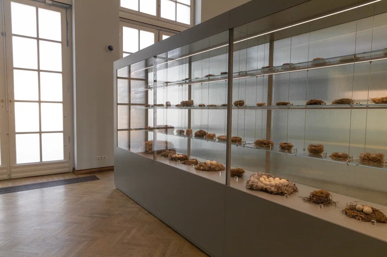 Рассматривая витрину с птичьими гнёздами, мы можем убедиться, что хотя яйца похожи по форме, их размеры и окраска могут очень отличаться. Не менее разнообразны и материалы, из которых птицы строят свои гнёзда.