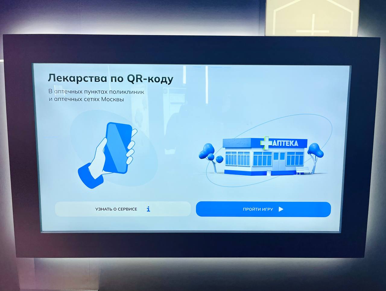 Нажмите на кнопку «Узнать о сервисе», изучите как получить лекарства по QR-коду в Москве, затем пройдите игру.