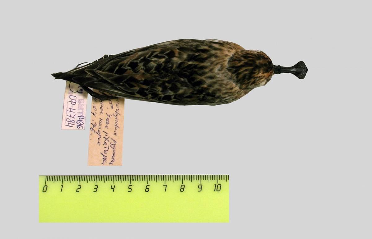 Формирование коллекции тушек Биологического музея началось в ноябре 1945 года, когда в фонды музея поступили первые тушки птиц от Е. П. Спангенберга. Самая значительная часть коллекции (918 тушек) была закуплена в 1968 году. Часть тушек поступила из Дарвиновского музея в 1951 году. Значительная коллекция (303 тушки птиц) была приобретена в 1984 году у В. А. Остапенко. Коллекция продолжает пополняться в настоящее время за счёт экспедиционных сборов сотрудников музея. Значительная часть коллекции (132 тушки) собрана сотрудником нашего музея М. В. Касаткиным. Самым старым экспонатом фондовой коллекции тушек является тушка самки африканского широкорота с Мадагаскара, которая датируется октябрём 1870 года. Коллекция тушек птиц включает 575 видов (271 вид — неворобьиные, 304 — воробьиные) и представлена в основном видами фауны России и территории бывшего СССР. Современная орнитофауна России по последним данным насчитывает 789 видов птиц, в коллекции музея представлено 60 % этого разнообразия. В музее хранятся экземпляры тушек 69 видов птиц, относящихся к другим фаунам мира.