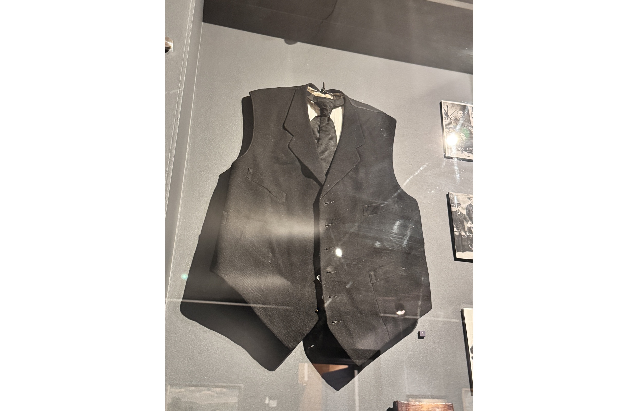 Галстук и манишка принадлежали Александру Никитичу Есенину. Прообраз галстука – шейный платок – был известен еще в Древнем мире, а вот манишка – изобретение более позднее. Горожанам XVIII – начала ХХ века она нередко помогала сэкономить: ее прикрепляли к недорогим сорочкам, чтобы костюм выглядел элегантнее. Манишка представляла собой нагрудную вставку, которая была видна в вырезе жилета, фрака или дамского платья. В начале XX века эта деталь одежды была распространена среди московских приказчиков, музыкантов, официантов и мелких служащих.