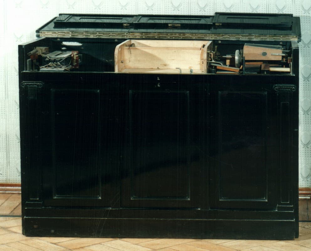 У правой стены стоит Welte Mignon (Вельтé миньóн) – механическое фортепиано, воспроизводящее записи с перфокарты. Скрябин записал свои исполнения на фирмах Хупфельд в 1908 году и Вельте в 1910. Для их воспроизведения необходимо было приставить Welte Mignon к роялю, и далее механические «пальцы» начинали сами играть на инструменте. Уникальные записи скрябинской игры были расшифрованы и оцифрованы Павлом Васильевичем Лобановым, талантливым пианистом и звукорежиссёром, разработавшим методику переноса записей с механических фортепиано на грампластинки и нотную графику.