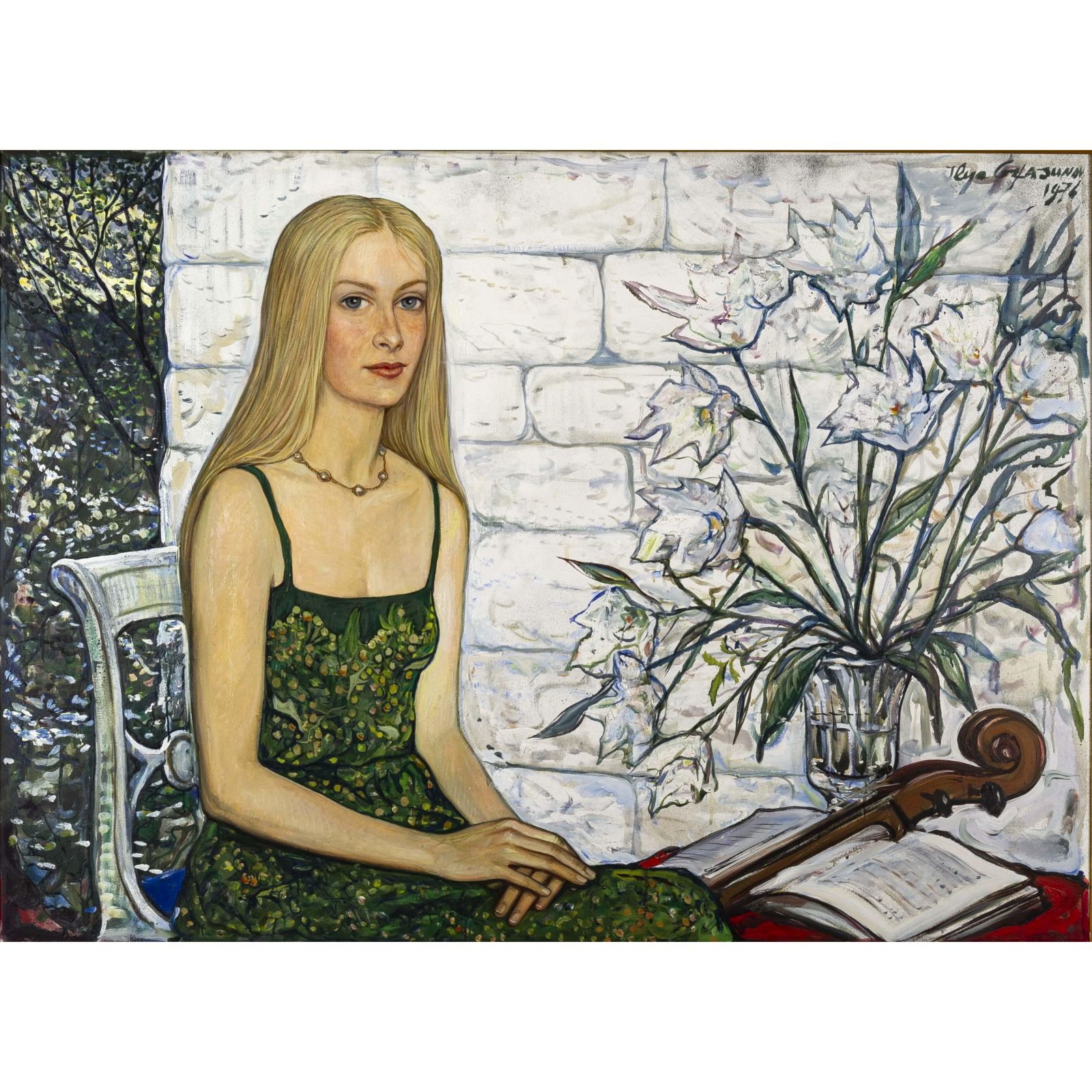 В экспозиции представлены два портрета членов семьи руководителя Дрезднер Банка Юргена Понто, созданные в 1976 году в их доме около Франкфурта-на-Майне. Графический портрет представляет супругу Юргена Понто – известную пианистку Игнес Понто, рядом с дочерью в профиль. Большой портрет маслом – образ его юной девятнадцатилетней дочери Коринны, виолончелистки и оперной певицы. Художник тонко передал трепетное состояние души молодой девушки, хрупкой, смотрящей на зрителя широко открытыми большими голубыми глазами, расцвет её молодости, её чистоту, ассоциативно подчеркнутую нежными цветами белых лилий.