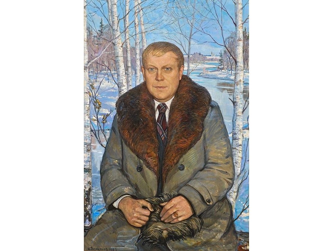 Душевной теплотой наполнен портрет писателя кисти Ильи Глазунова. Крупная фигура В.А. Солоухина предстает на фоне пейзажа средней полосы России, напоминающего родную для него Владимирскую землю, воспетую им в прозе. Образ демонстрирует гармоничную слитность героя с красотой просторов Родины, ее величавых рек и белокаменных храмов, хранящих память о прошлом.