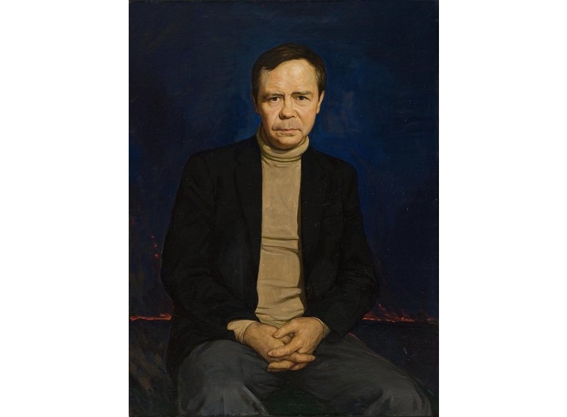 Психологическая характеристика модели в произведении выявляется во многом через решение фона: низкий горизонт пламенеет во тьме, выражая переживания писателя о судьбе родины. Из темноты отчетливо проступает лицо Валентина Распутина, выразительный жест его скрещенных рук поражает своей реалистичностью.