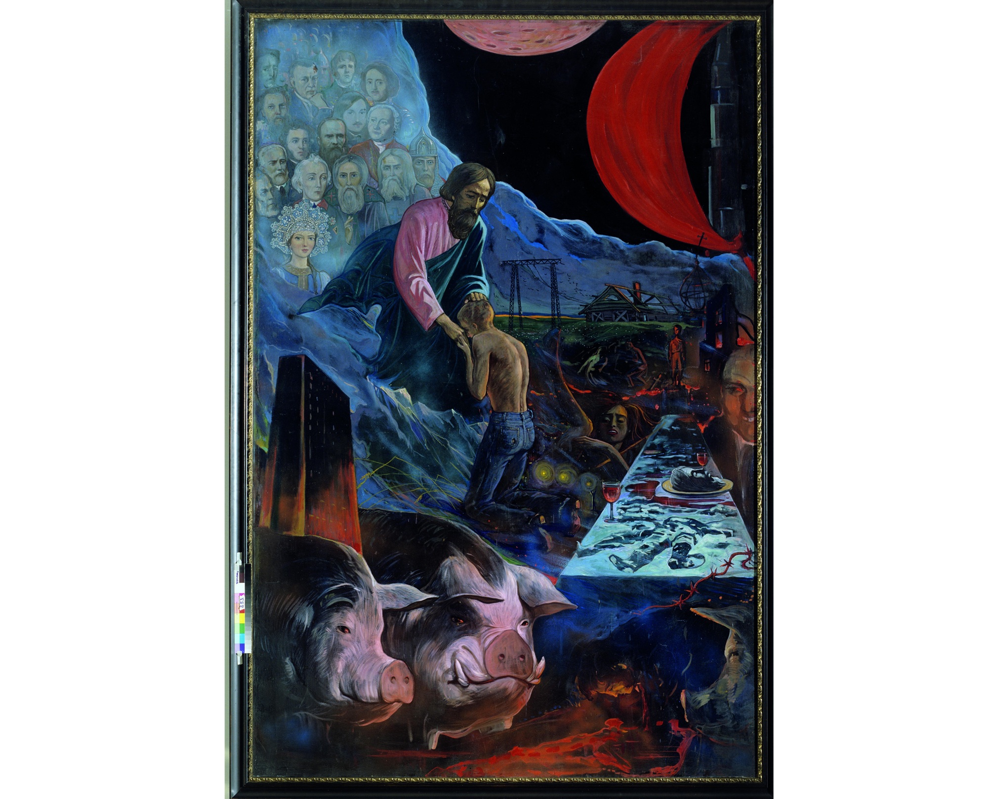 Художник дал свою трактовку библейского сюжета о блудном сыне. В центре композиции образ полуобнаженного юноши в джинсах, который отойдя от порока, припал ко Христу, над светлым образом которого — портреты великих деятелей отечественной культуры, науки, прославленных героев нашего исторического прошлого.
