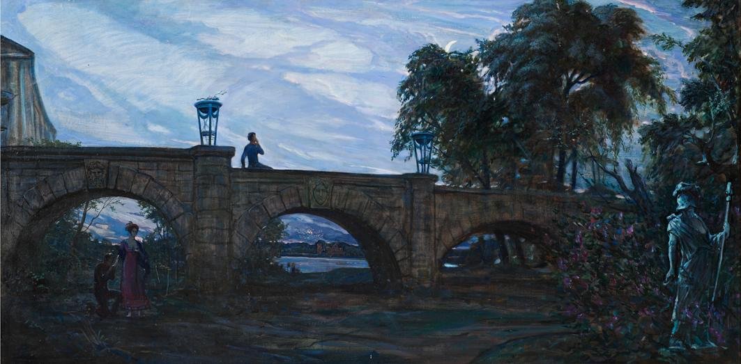 На картине «Юность Пушкина. Царское Село» 1982 года Илья Сергеевич Глазунов изобразил великого русского поэта на заре его жизни в романтической атмосфере белых ночей. Силуэт юного Пушкина, сидящего на пандусе Камероновой галереи, выделяется на фоне неба. Но уже по его мечтательной позе зритель чувствует, с каким упоением любуется переполненный надежд поэт окружающей его красотой, возможно, именно в этот момент в нем зарождается новый творческий замысел.