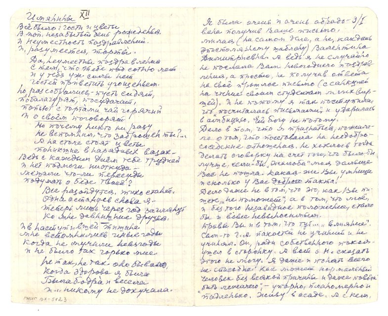 Документ. Письмо О.М. Раницкой В.Д. Ивановой со стихотворением «Именины». 1980-е гг.