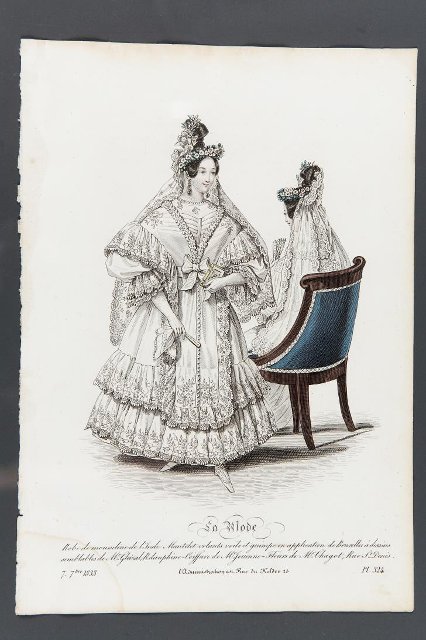 Гравюра. Лист из журнала «Мода» - с изображением дамы в пышном платье с накидкой и дамы сидящей в кресле. 1833 г., 7 сентября.