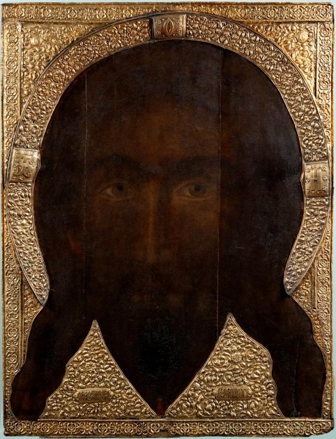 Икона в серебряном окладе. "Спас Нерукотворный" XIX век