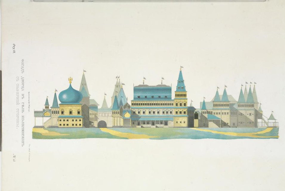 Хромолитография. "Фасад дворца в селе Коломенском с северной стороны". Лист №13 из издания "Древности Российского государства". Отделение VI. 1849 - 1853 г.г. Солнцев Ф.Г.