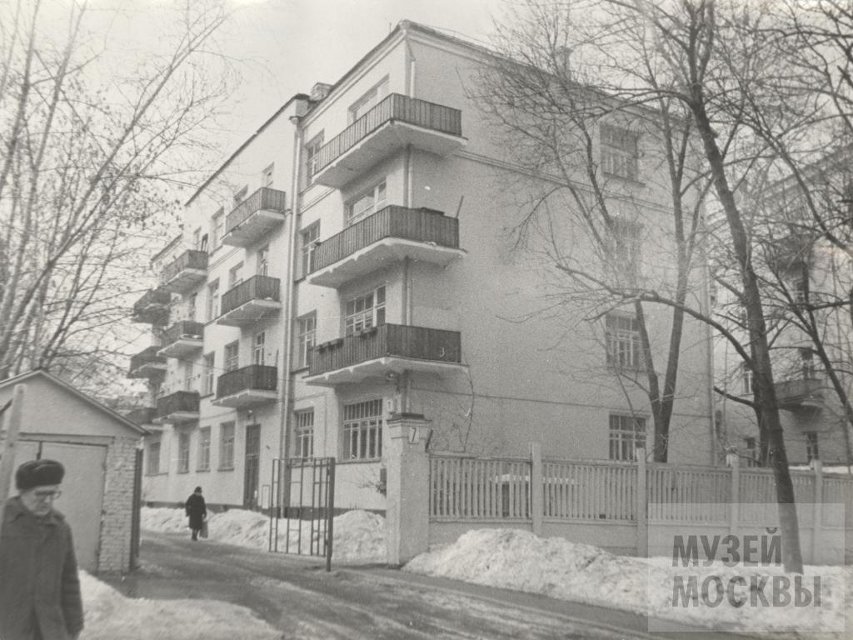 Фотография. Воротниковский переулок, д.7, стр.1. Вид на главный и боковой фасады здания. Март 1988 г. Панков А.С.
