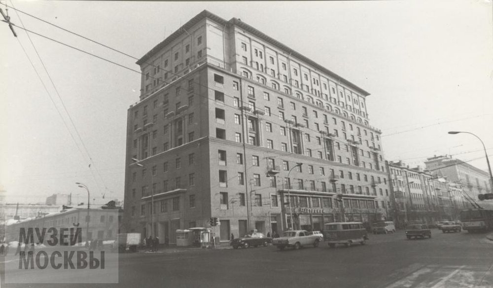 Фотография. Улица Горького, д.64. Вид на главный и боковой фасады здания. 1977 г. Погребецкий М.