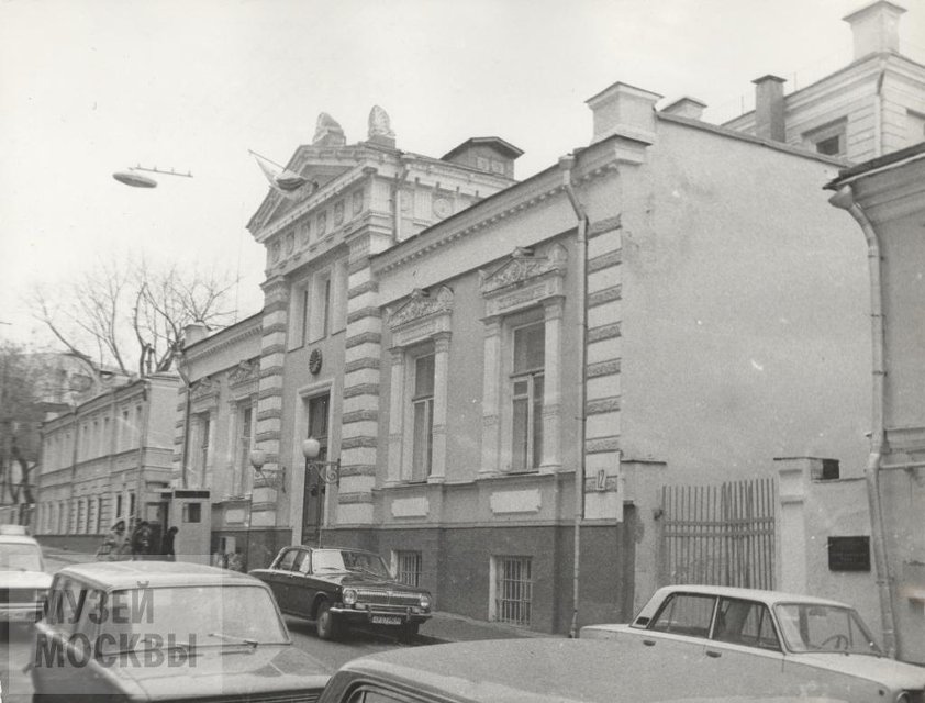 Фотография. Калашный переулок, д.12. Вид на главный и боковой фасады здания. Ноябрь 1985 г. Панков А.С.