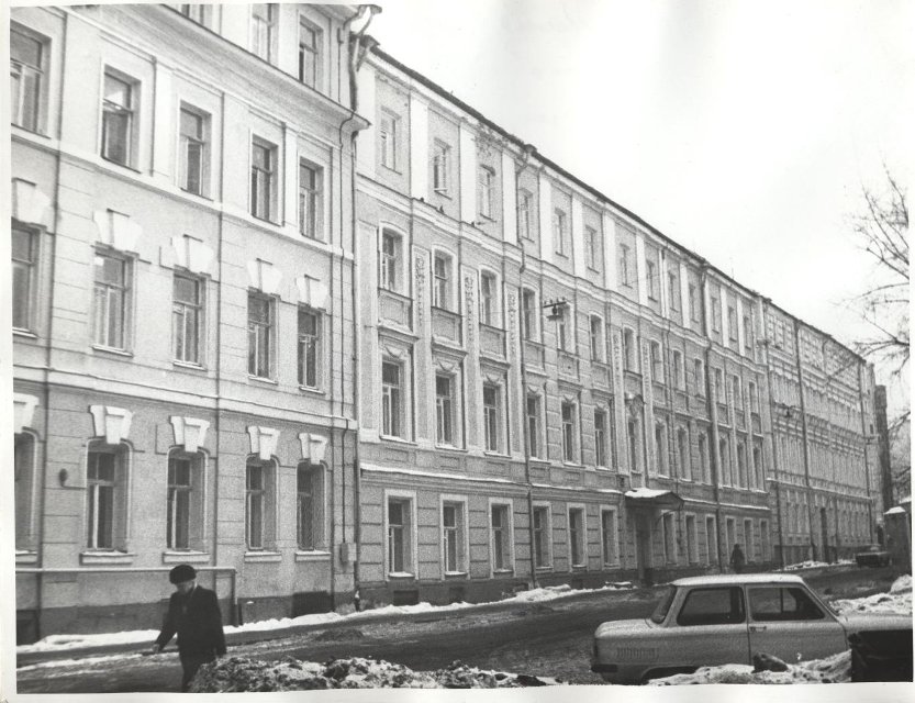 Фотография. Мерзляковский переулок, д.1. Вид на главный фасад здания (средняя часть). Март 1987 г. Панков А.С.