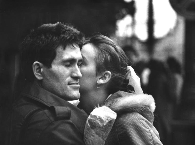 Цифровая фотография. Поцелуй у Белорусского. 1980-е гг. Дашевский М.А.