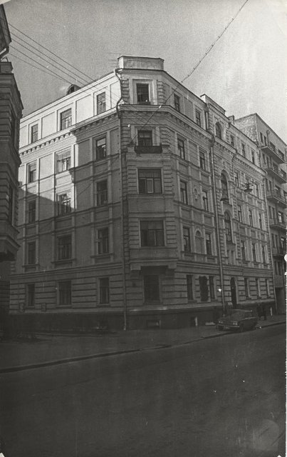 Фотография. Улица Москвина (сейчас Петровский переулок), д. 5. Вид на главный и боковой фасады здания. Май 1977 г. Ефимов Э.В.